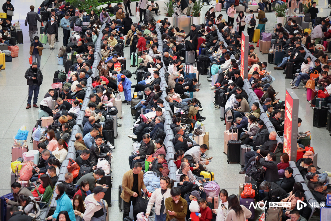 在广州务工一年的张先生特意改签了车票,手里紧攥着给女儿准备的芭比娃娃,眼中满是期盼:“想闺女了,坐这趟车睡一觉就能到家,她一早醒来就能看见我了。”广州南站客流。