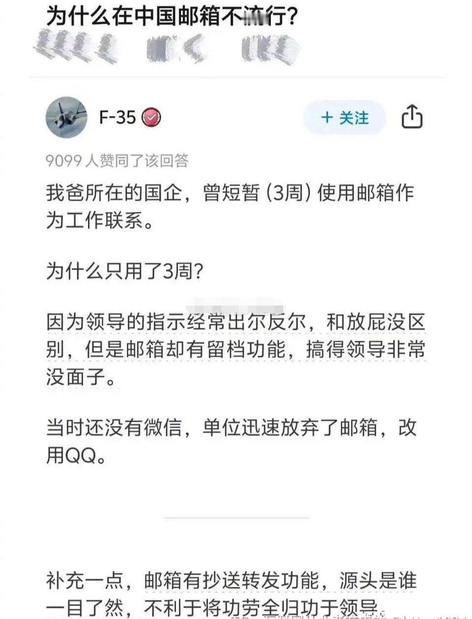 为什么邮箱办公在中国流行不起来?主要是不利于领导。👇