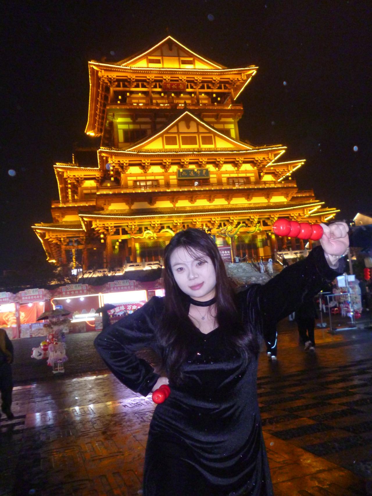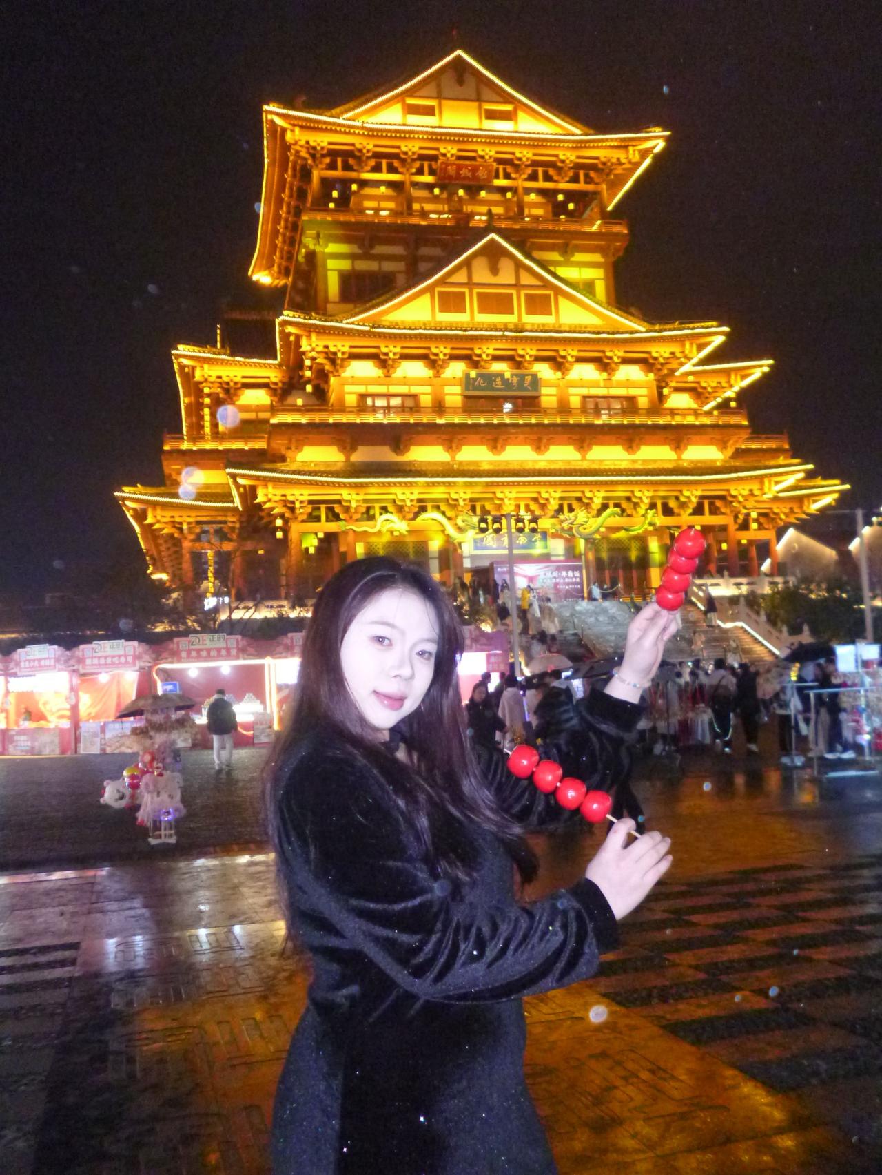 没有风的夜晚还是冷,挡不住喜欢拍照小姐姐的热情。没有笑容,仍可欣赏。~~国风美学