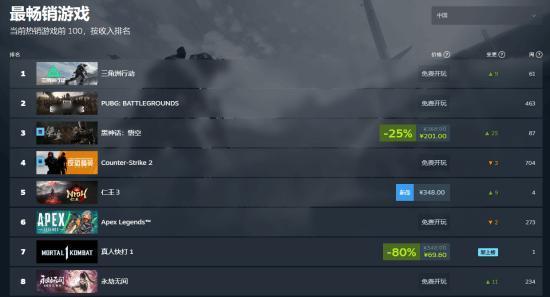 【steam特惠】近日,由游戏科学开发的西游题材ARPG《黑神话:悟空》,在Steam上迎来了新史低,售价为201元,折扣将于2月24日结束。 受此影响《黑神话:悟空》再度杀回Steam热销榜。目前已登顶国区付费游戏热销榜,全球排行第二。