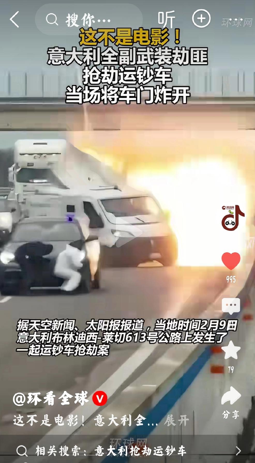 当地时间2月9日,意大利发生了一起“好莱坞大片”一模一样的运钞车抢劫案。 个人认为:这是一群嚣张而又极具犯罪能力的极端暴力而又充满策略色彩的好莱坞式抢劫。 近一年,欧洲各大国,闻名世界的恶性案件接连不断,法国发生古董偷窃案没破案,这回又是意大利好莱坞式抢劫运钞车,那么个人预判:德国也将大概率发生震惊世界的恶性案件,为时不远了。 因为欧洲各国不单是政府破产,而民众的生活也陷入困境泥潭之中。 欧洲各国需要把精力和能力集中在民生与经济发展方面,而不是追随世界恶霸—美国,搞各种各样的小院高墙,作茧自缚。