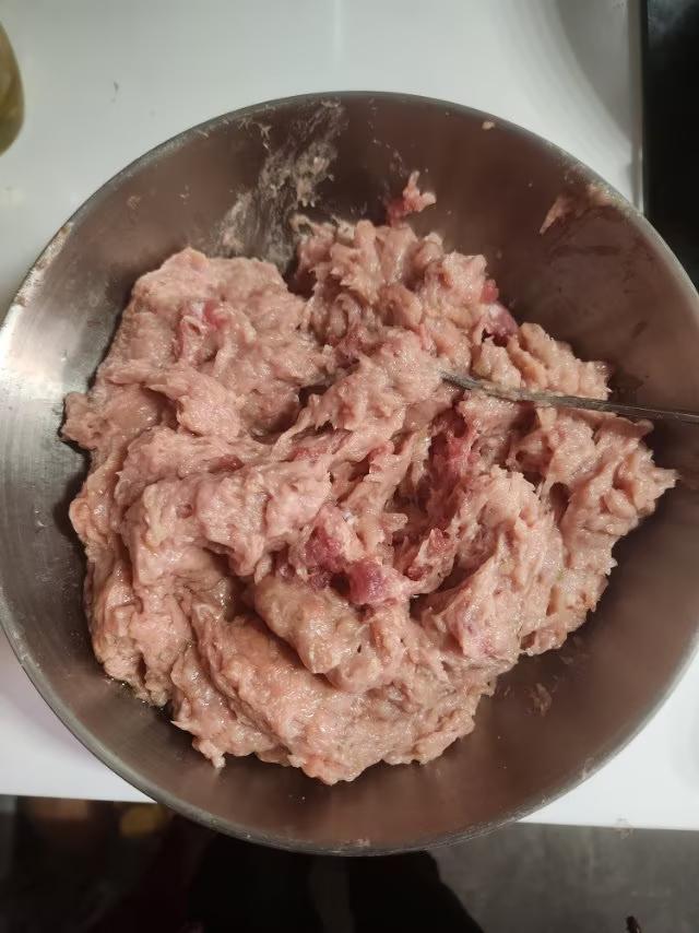 今天是小年我做的滑丸子是不是太香了? 今日是小年,是打扫卫生、准备年货的时候了,今天我做了滑丸子: 1、食材:猪前腿瘦肉6斤。 2、调科:葱姜水、鸡蛋两个、葱姜末、五香粉、地瓜淀粉、食用油。 3、打肉浆:在原来打肉陷的基础上,预留1斤稍后加入,防止肉浆太细;剩下5斤再加入搅拌机内、加上葱姜水、盐、食用油、鸡蛋两个、葱姜末、五香粉适量、继续打成更细点的肉浆。然后加入预留的一斤,搅拌均匀备用。 3、单用盘子放入少量地瓜淀粉滩开。 4、锅中加入适量水,用大火烧开,把肉陷从手虎口中挤出圆形丸子,然后放在地瓜淀米里一滚,使肉丸表面全部沾上一层淀粉,即可下锅煮熟,待丸子全部浮上水面上,证明肉丸全部都熟了,然后捞出放入冷水中。 在此后的几天中,尽量把丸子放较冷而不上冻的地方,每天换一次凉水。 如冰箱不满,也可从冷水中捞出控水后,用塑料袋好放入冰箱有。 朋友们怎么做滑丸子呢,快来交流一下吧!