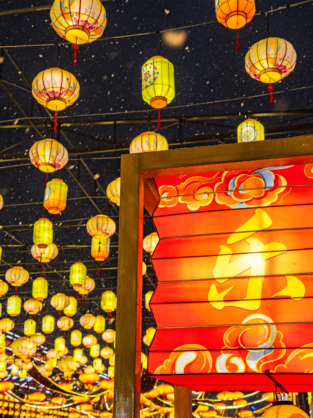 百米红灯谜墙🏮年味直接拉满