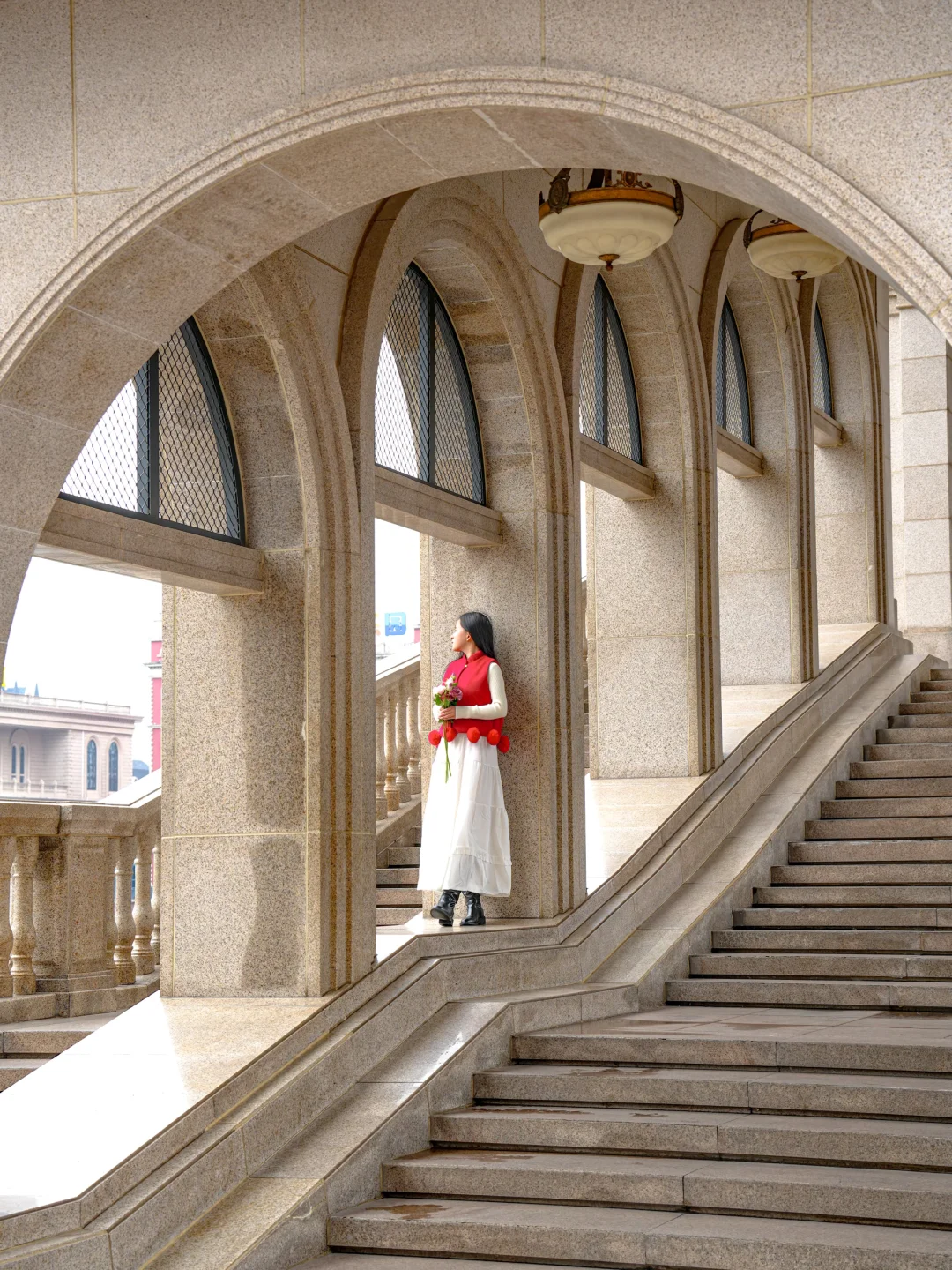 ✅白色拱廊长廊🧱:对称构图+温柔阳光,随手拍都是欧洲街头既视感