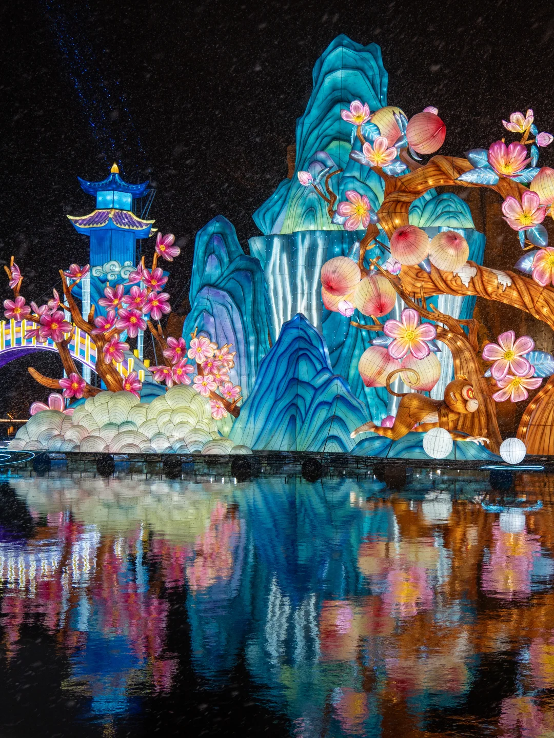 40m水上唐诗灯海💧倒影绝美