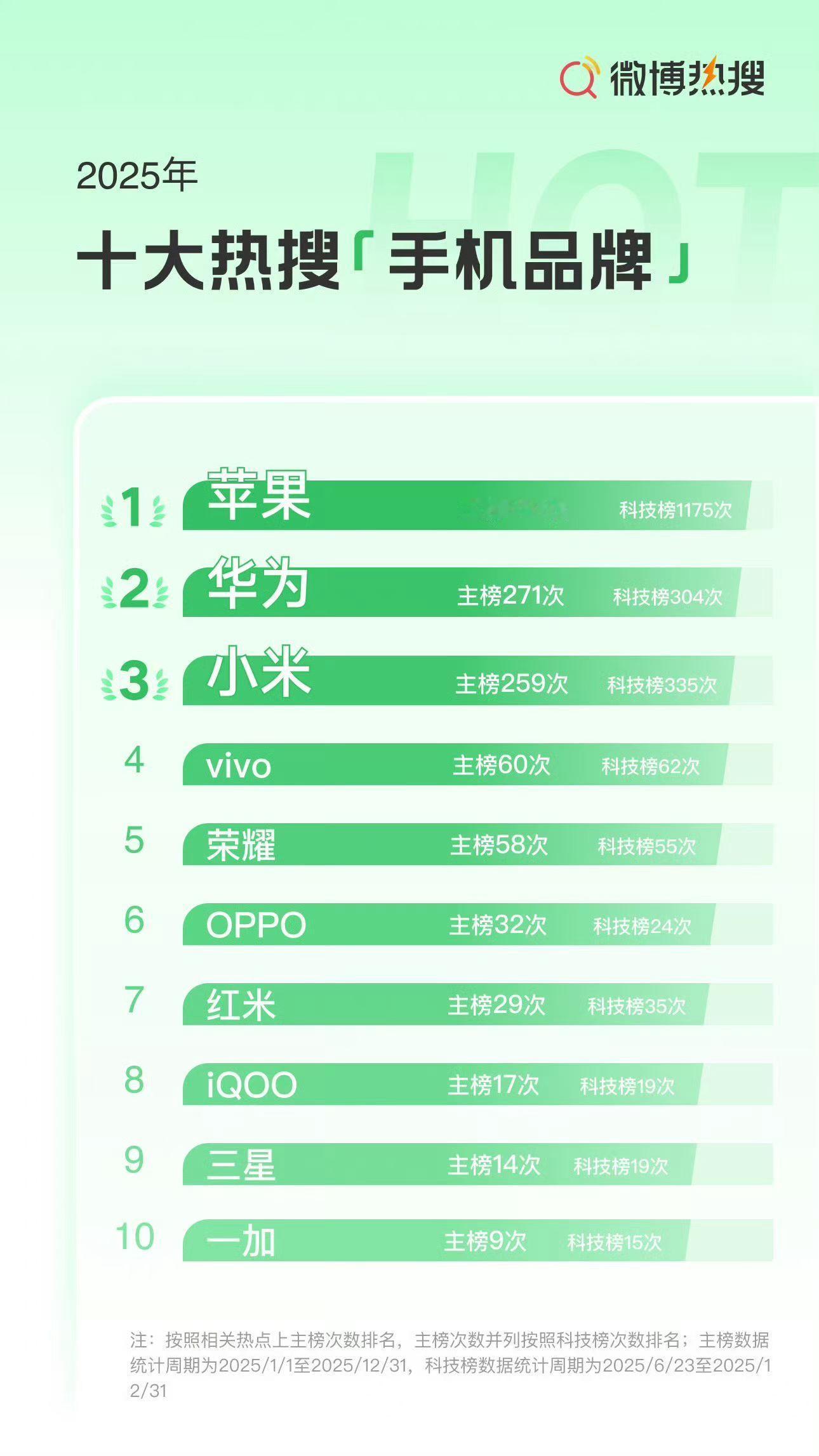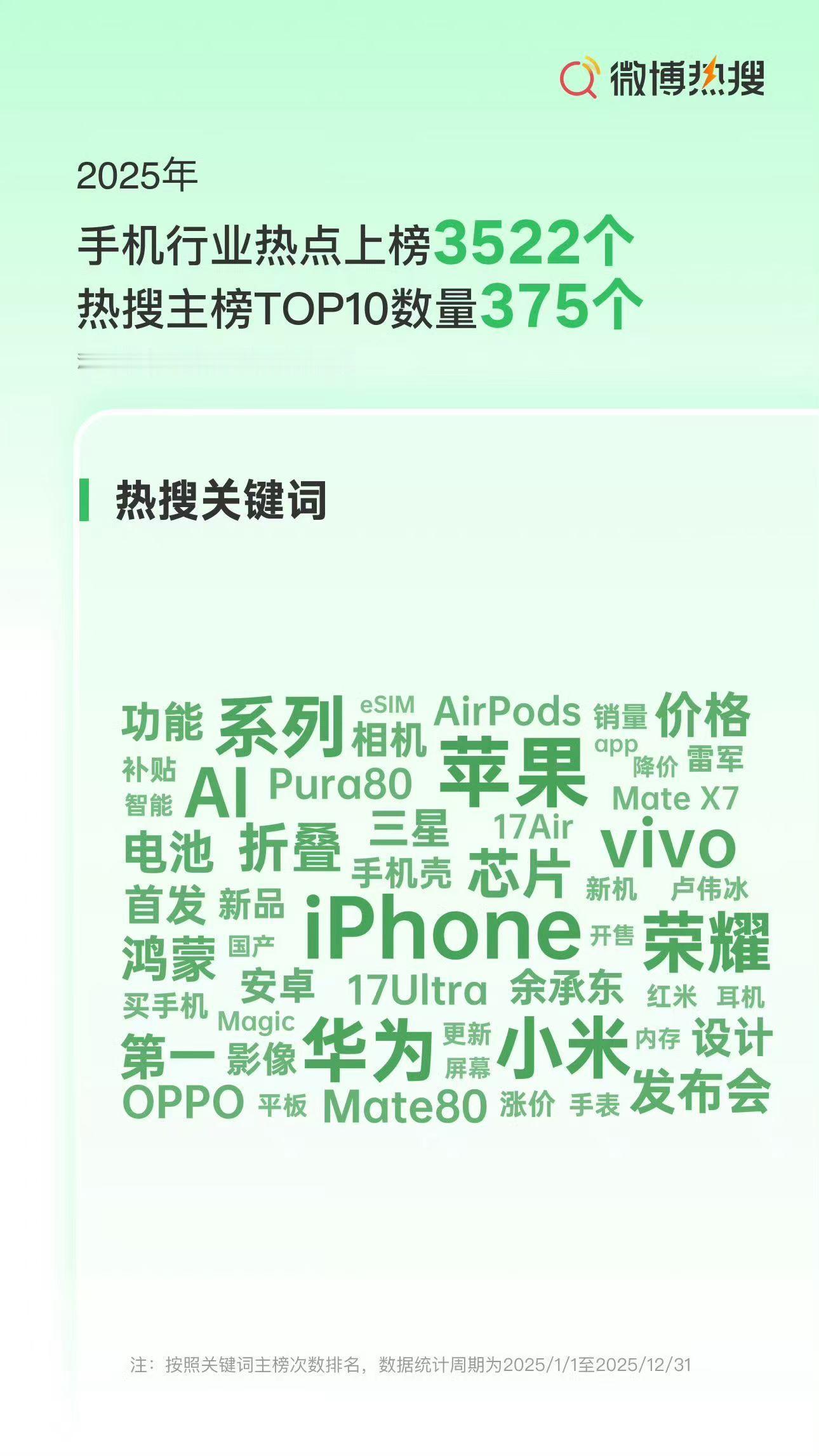 微博发布2025年手机行业热搜趋势报告,苹果,iPhone成热搜最多关键词。省流
