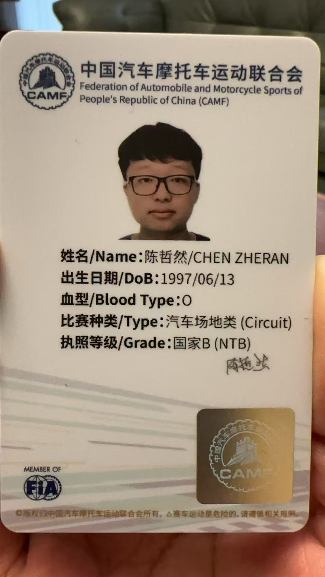 持证上岗了,用的还是我18岁时候的照片,梦回高中了属于是,少年时期的赛车梦,快30了总算迈出了第一步。