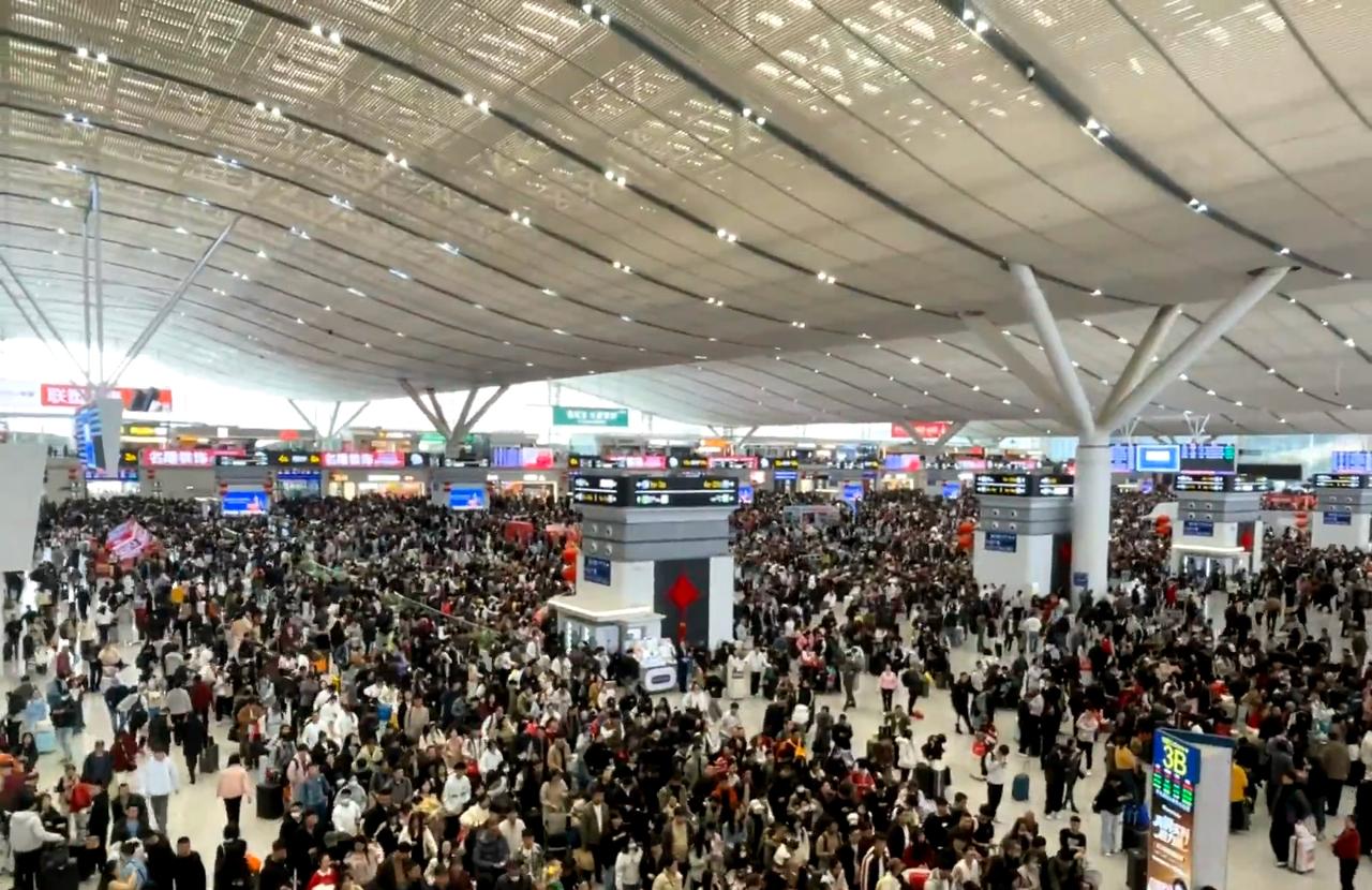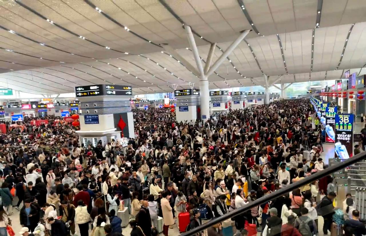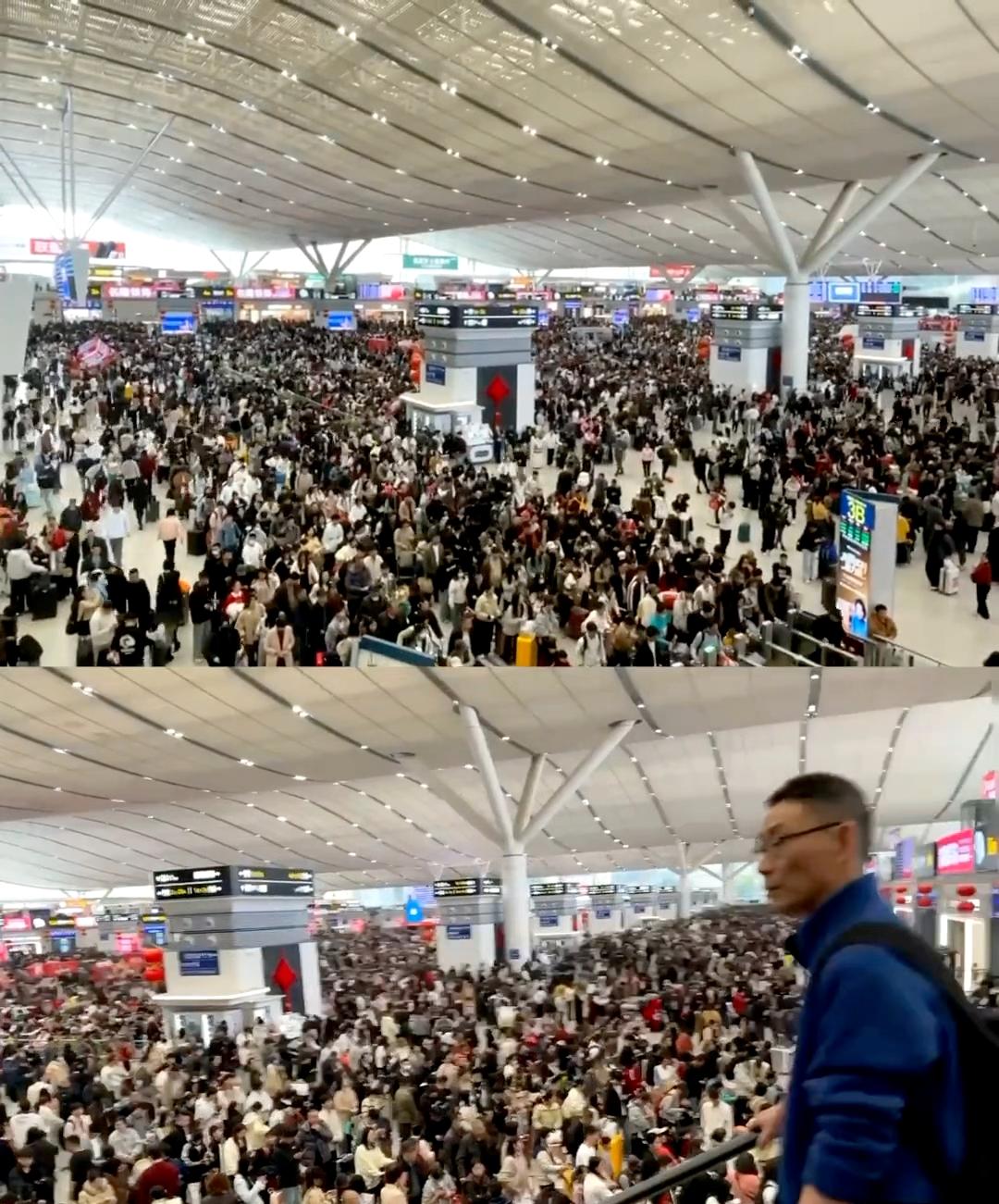 春运2.10日深圳北站 人如蝼蚁具象化了,人直接排队排到扶梯口了 建议至少早1:30小时来动车站。