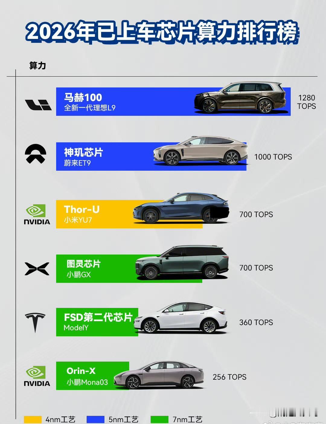 这个芯片天梯图不算准确,严格意义上马赫100的新L9还没交付呢。 马赫100芯片采用5nm工艺,采用全新数据流架构,没法用英伟达CUDA生态里面成熟算法因子,很多底层需要独立开发,目前智驾算法团队和芯片架构团队正在疯狂加班。