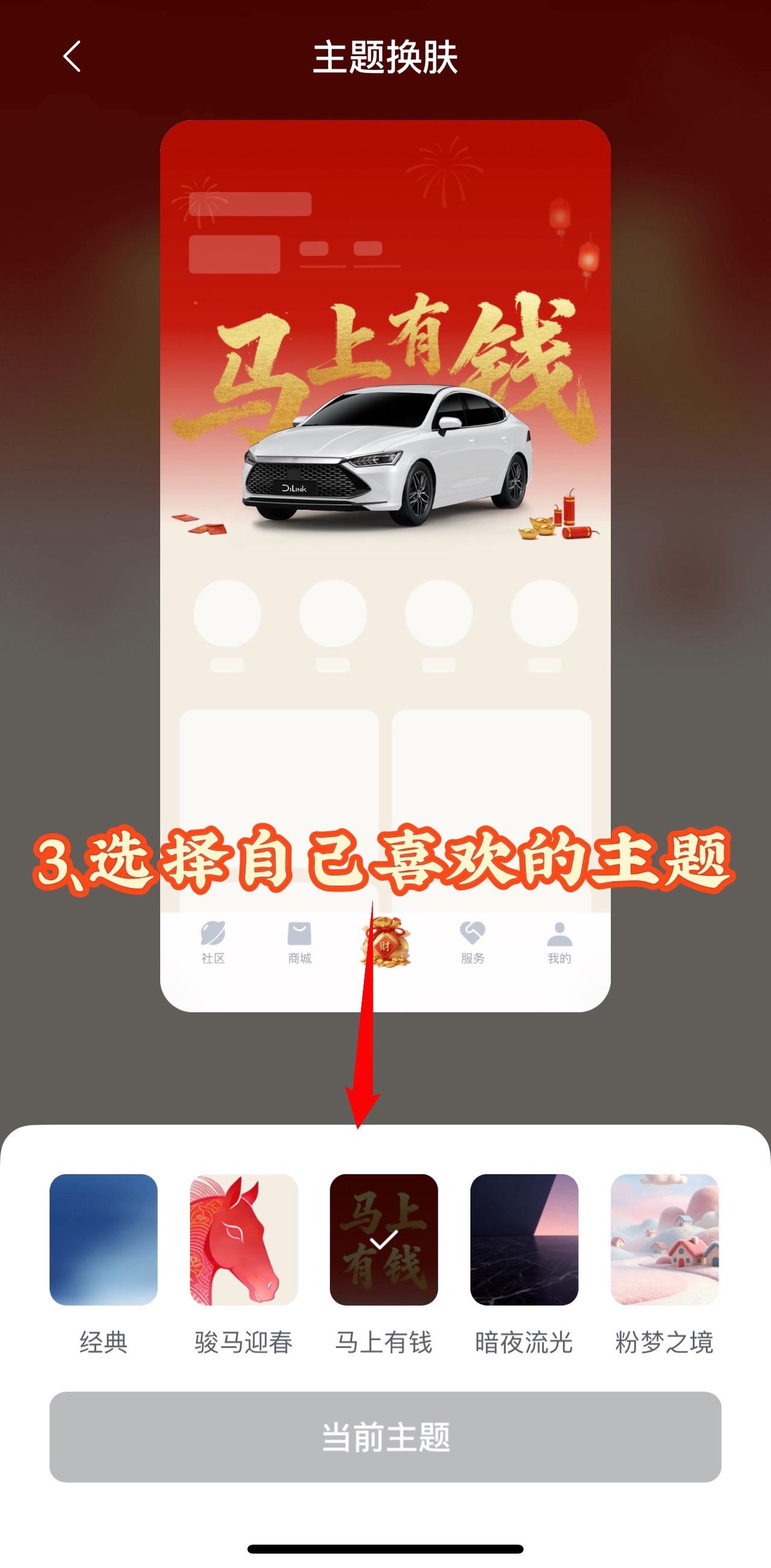 比亚迪app新春主题皮肤怎么换?比亚迪比亚迪app比亚迪app主题秦plu