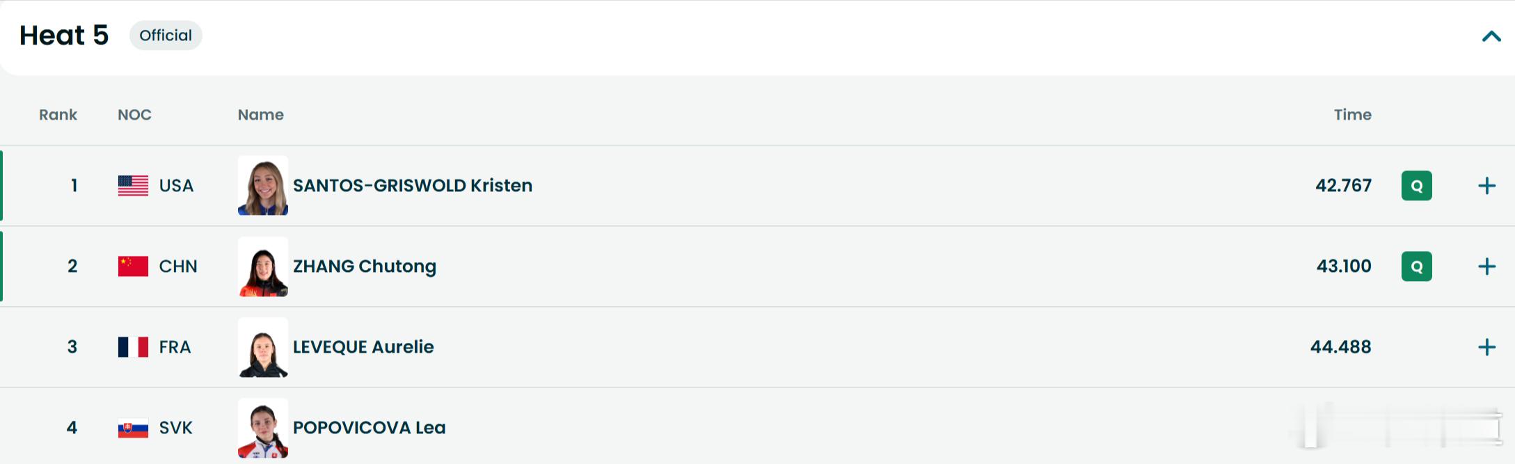 冬奥会女子短道速滑500米预赛张楚桐第五组第2,顺利晋级1/4决赛!