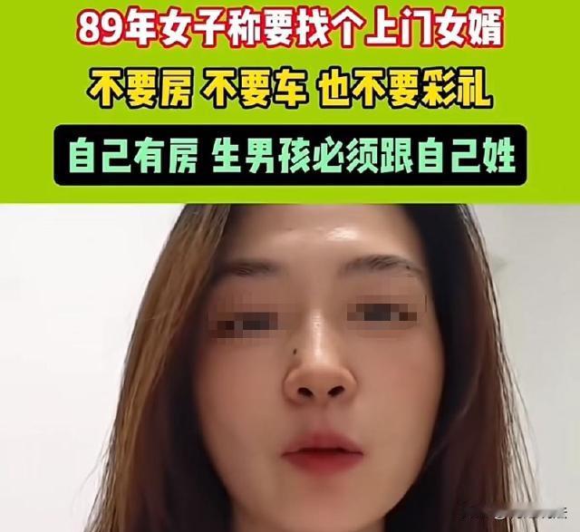 湖北,一位89年出生的女子,发视频找老公,还抛出了自己的择偶标准:可以不要车、不要房、不要彩礼钱,但是生的男孩必须要跟自己姓,因为自己家里很传统,爸爸希望可以将血脉传下去。当征婚条件发布之后,这位37岁的单身女子,很快就冲上了热搜。 一位长相挺好看的单身女子,因为自己的一条视频,一下子就火了。 原来,她是跑到社交媒体上招亲了。37岁的人了,却还单着,着实是一个大龄剩女了。 面对着镜头,女子表示:我就是想要找一个上门女婿。 然而,也有不少青年表示,我家就是再穷,作为一个男人,我也不要去做上门女婿。 可是现在这个年代,娶个媳妇真的是要花很多钱,就像江西吧,据说彩礼钱都要30多万,很多男子表示头疼。 接着继续,聊聊这个89年的女性招亲事件。女孩继续说,我要是嫁给你,不图你有钱没钱就算是两兜空空也无所谓。 “不过,我就是有5个条件,合适的话,欢迎找我谈谈。”说着,女孩就展示出自己的五项择偶条件。 1.年龄适合:女子希望男方的年龄在27岁到47岁之间。 2.身高匹配:也希望男子至少在1米7的个子。 3.核心一条:将来生育的男孩,一定要跟女方姓,这是家里的传统,三代单传,不能让家里断了香火,否则就会造成遗憾了。 4.建设新房:结婚后,两个人回老家建设房子,产证都可以写男方的名字。 5.年内结婚:遇到合适的,年内就结婚,不想再拖了。 那我们也来看看这位女士的自身条件。 女士身高1米72,身材高挑,确实是女生中的上品。 其次,女孩的气质非常出众,长相貌美,事业稳定,在老家县城里有非常体面的工作。 另外,女孩子的家庭和睦,父母关系很好,家庭氛围融洽,看得出来是生活在爱的环境里。 只不过,1989年出生的她,一直在将就,如今都37岁了,再等下去,估计就是40岁的中年妇女了。 不过看上面的条件,也就只有一点不行,在男子眼中,就是这个姓氏的问题,相信大多数男性,还是希望孩子跟自己姓吧。 女士也表示,她家庭优越,自己也有存款,只不过传统观念比较强一些,很多男子不同意,所以,这个也是她一直单身的原因。 有网友说,可以见招拆招: 第一、同性的男子们,你们可以去竞聘; 第二、她要的上门女婿啊,本来就不收钱,而且还要倒过来呢! 第三、娶回来之后,生两个男孩,这样什么问题都可以解决了。 本案释法: 女子想要征婚,她指出将来生下男孩之后,希望男孩可以跟自己姓,不跟男方姓,主要是延续家中的传统。如何评价女子的这个征婚诉求呢? 根据《民法典》明确规定,法律对于孩子的姓氏规定很明确,孩子跟随母亲姓,并不是“苛刻要求”,而是平等权利的体现。子女可以跟着父亲姓,也可以跟着母亲姓。 女子征婚提出,希望男孩将来可以跟自己姓。 这个其实牵涉处传统姓氏文化,跟现代性别平等观念之间的碰撞。 从法律角度来看,女子希望孩子可以跟母亲姓,这个诉求是合理合法的。但是从现实家庭协商的角度来看,更加像是双方去沟通协商的共识问题,不是单方面可以决定的。 所以说,这就意味着,生下小孩之后,姓氏本来就没有必须要随父姓这一说,这个规则是不存在的。 反观新时代的女性,在经济、教育、地位上不断提升,可以延续姓氏的愿望,也属于一种正当的情感需求。 但是这个诉求很容易引发争议,特别对于男性来说,传统的观念已经根深蒂固,家中的老一辈更加无法接受,所以就很容易被排斥。 这位女子,要说她看中的是什么,其实说到底,还是希望她的身份被看重、被重视。即便是个女子,也可以让身份被延续。 反观如今的婚姻市场,要么就是要房、要车、要钱、要彩礼钱,可能因为这些世俗的东西,扼杀了很多对情侣,成为所谓爱情的照妖镜。 而这位女士,干脆、明确,甚至多出了很多的坦诚与担当。如果或作您,会考虑这位女士吗? 总之,看完这则征婚视频,大家看完之后都做好感受呢,不妨在评论区留言,一起来讨论吧!
