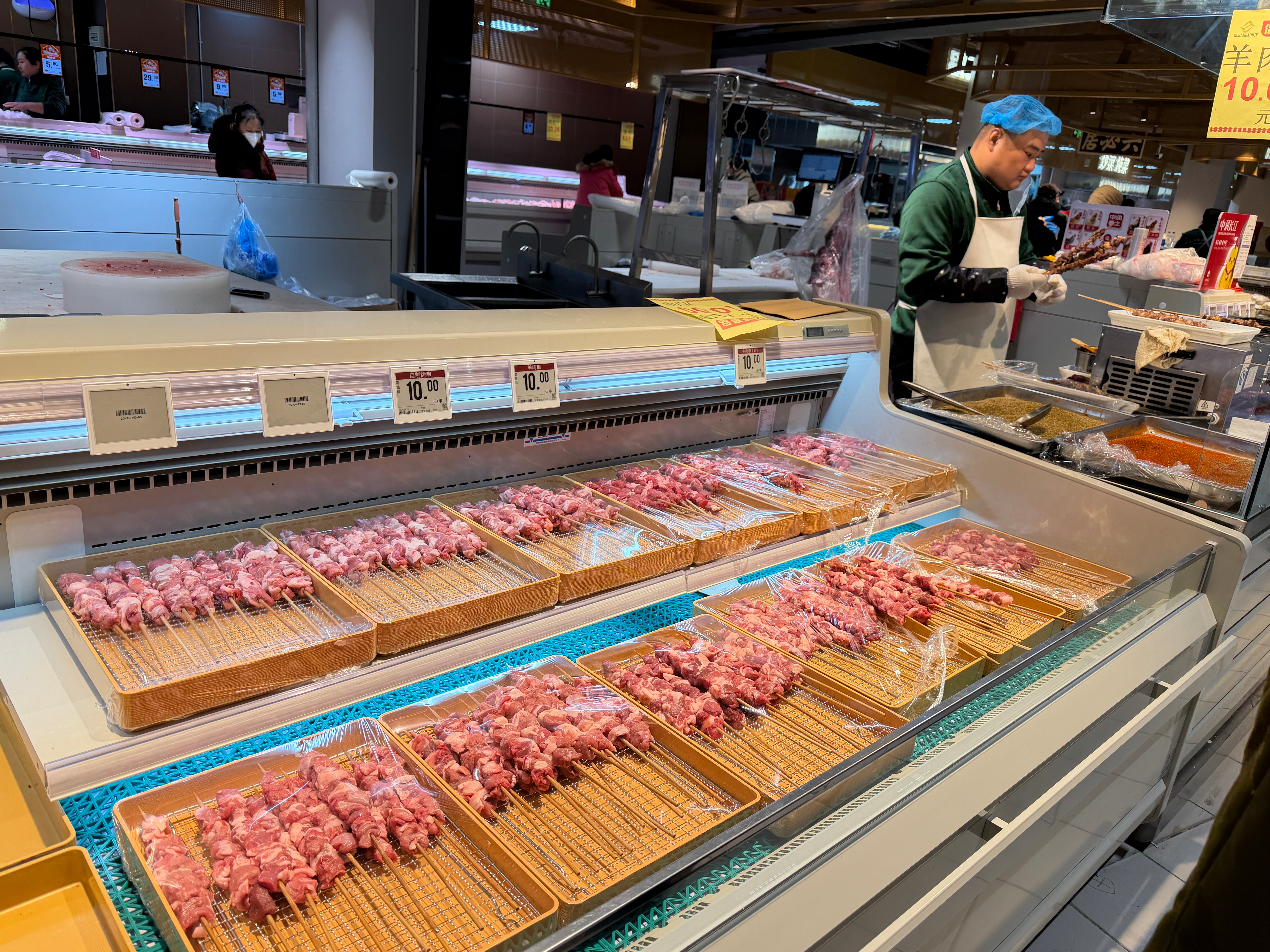 家附近的永辉超市爆改了,改的“胖里胖气”的,除了增加了大量熟食生鲜展柜,最引入注目的还是这个现烤羊肉串了!今天不饿,随便买点,下次来尝尝这羊肉串怎么个事