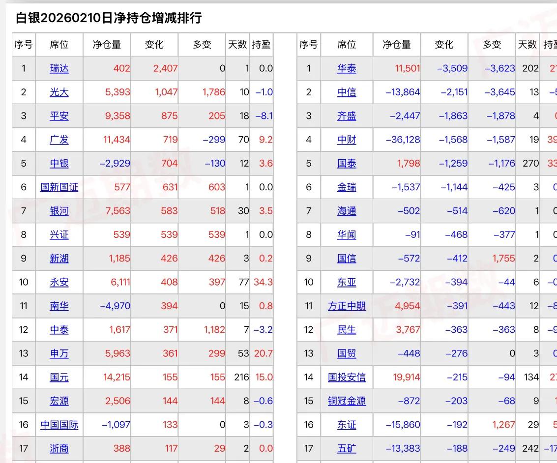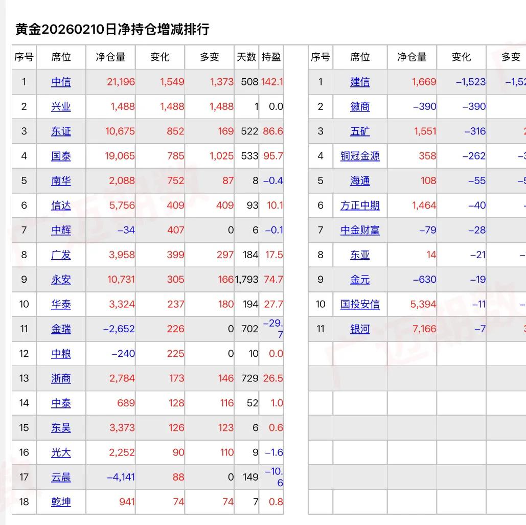 今天黄金白银各减持3万多手,中财,中信、国泰、华泰都在减多增空…