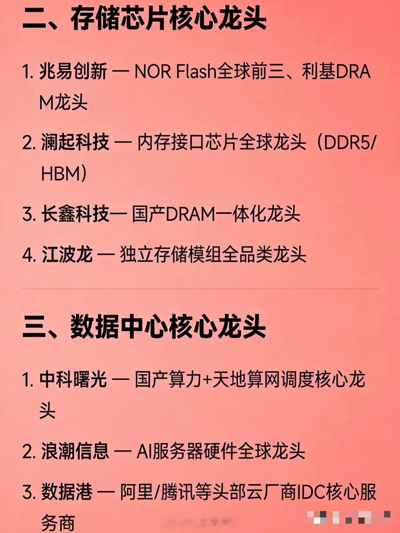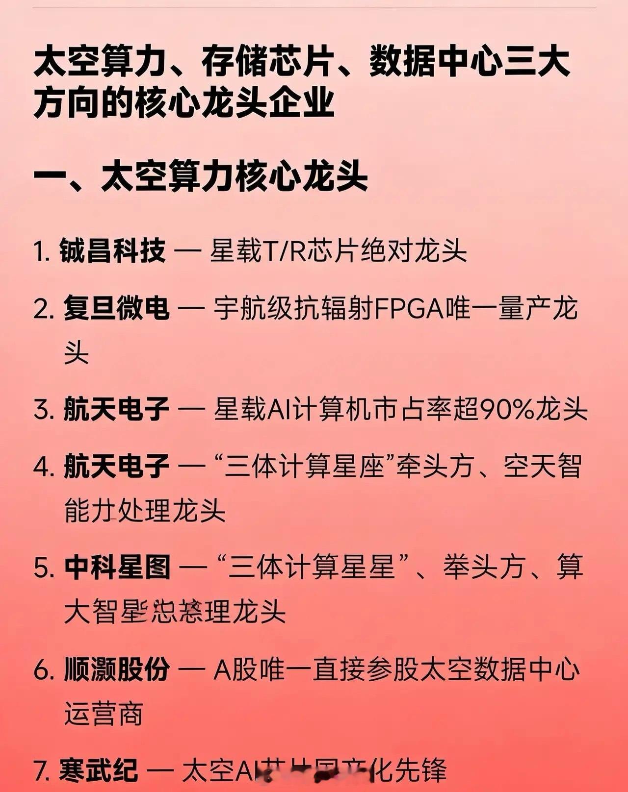 太空算力、存储芯片、数据中心三大方向的核心龙头企业