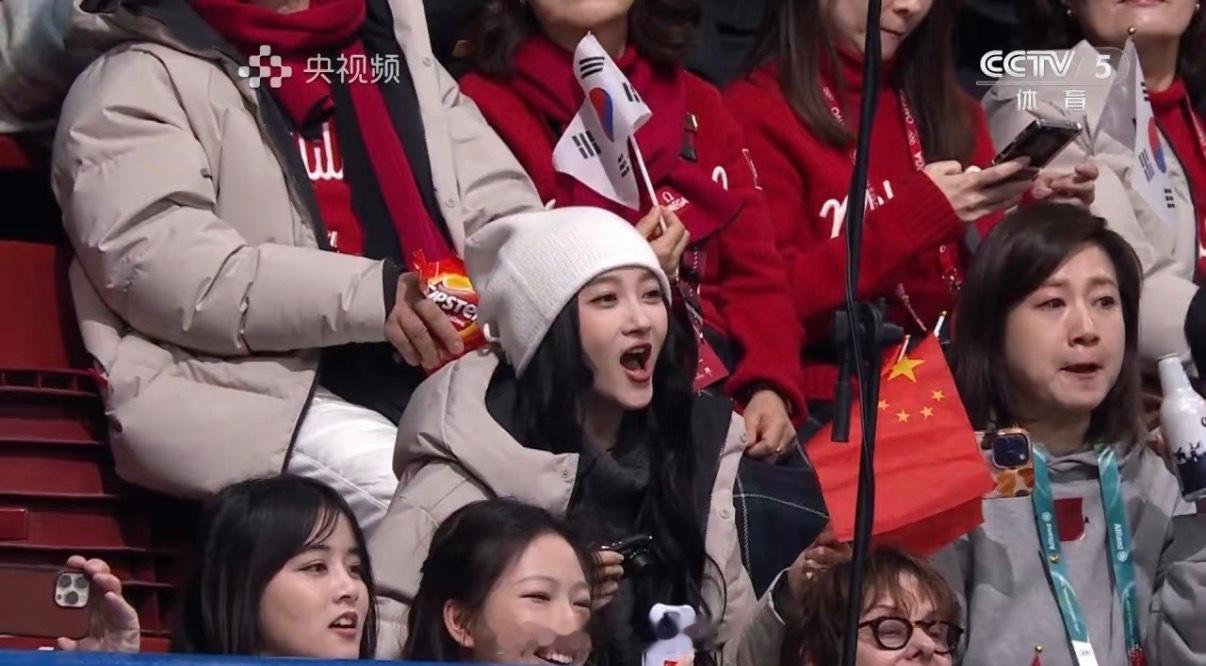 偶遇关晓彤看短道速滑关晓彤看短道速滑直播镜头