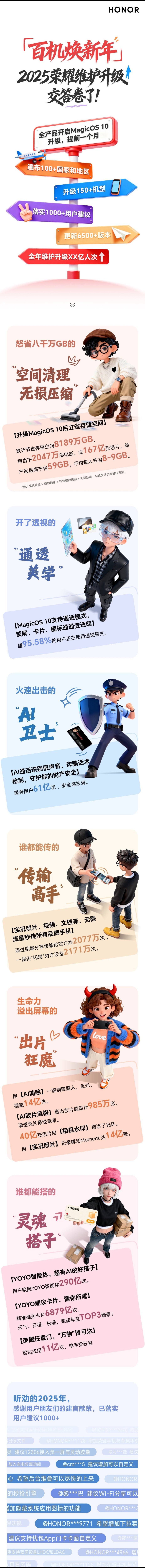值得一提的是,荣耀官方产品维护上月还交出了 2025 产品维护升级的答卷: