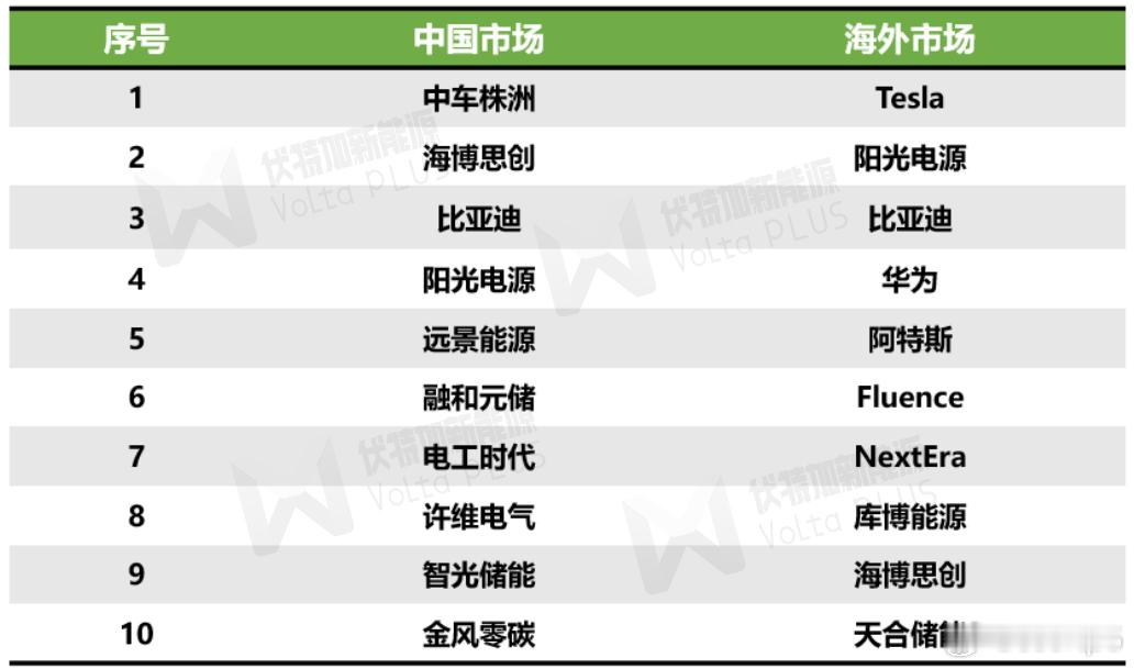 国内必然是中车株洲所第一,这个懂得都懂,第二是海博思创比亚迪和阳光电源位列三四,区别在于阳光电源不生产电芯,而比亚迪什么都有。