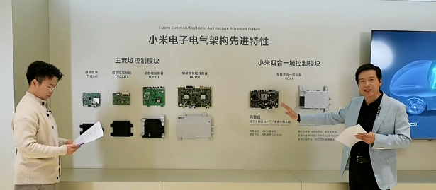 小米的四合一域控制模块,相比于业内常用的域控制模块小了非常之多,好处就是响应更快、更省电。我们车主体感最明显的就是哨兵模式,开一晚上也就少1-2km的续航,现在我哨兵都不关的。