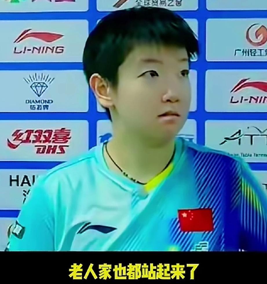 莎莎退场时感人的一幕出现了! 比赛完结束,莎莎退场到B区,座位上的所有观众都站起来了。前面有一位老人也颤颤巍巍的站起来,就像看自己的孙辈看着莎莎。大家真的很喜欢她。 新华社一句“莎莎归来”道出了大家对莎莎的喜欢。要说先今能比上莎莎的号召力的,莎莎第一,应该没人会说第二吧。