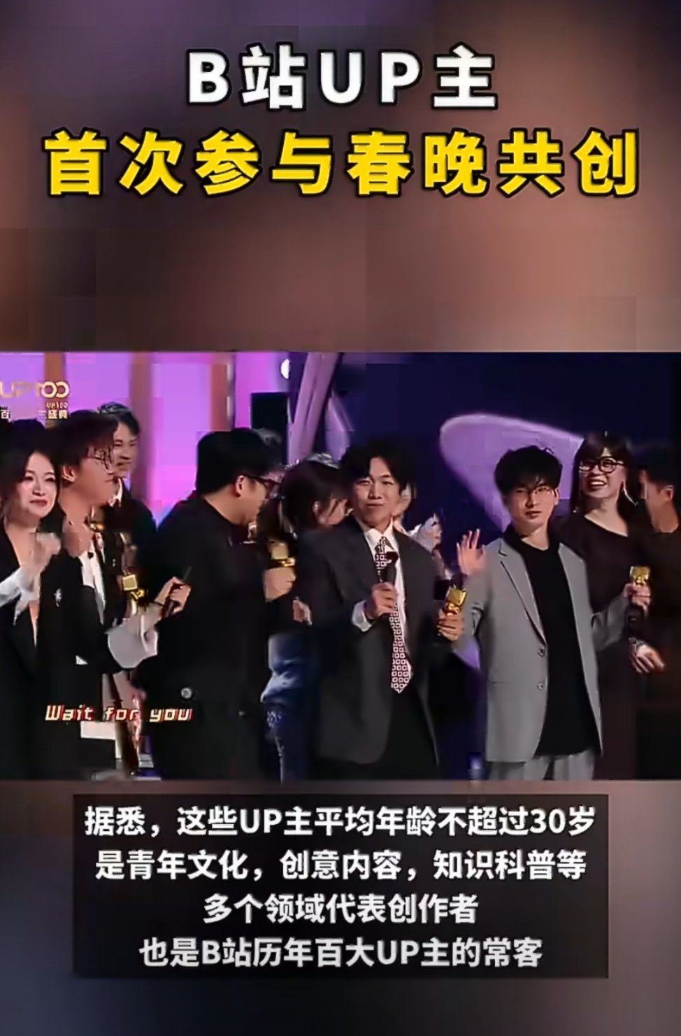 据说,今年春晚将首次引入UP主参与晚会策划讨论,他们的平均年龄不超过30岁,是不是意味着你的春晚会有很多是青年文化和创意内容。
