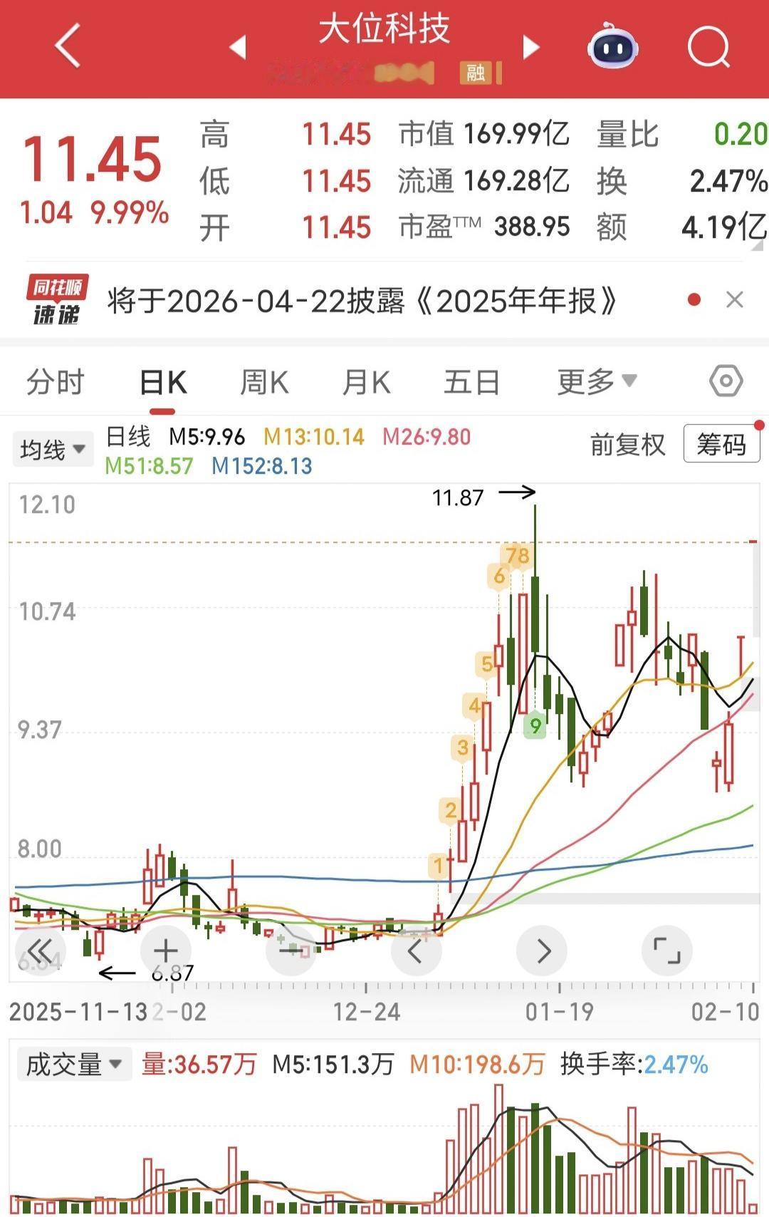 章盟主爆买1.6亿: 今天大位科技一字涨停。 盘后龙虎榜显示,章盟主三日爆买1.6亿。 不知道明天还会不会一字。