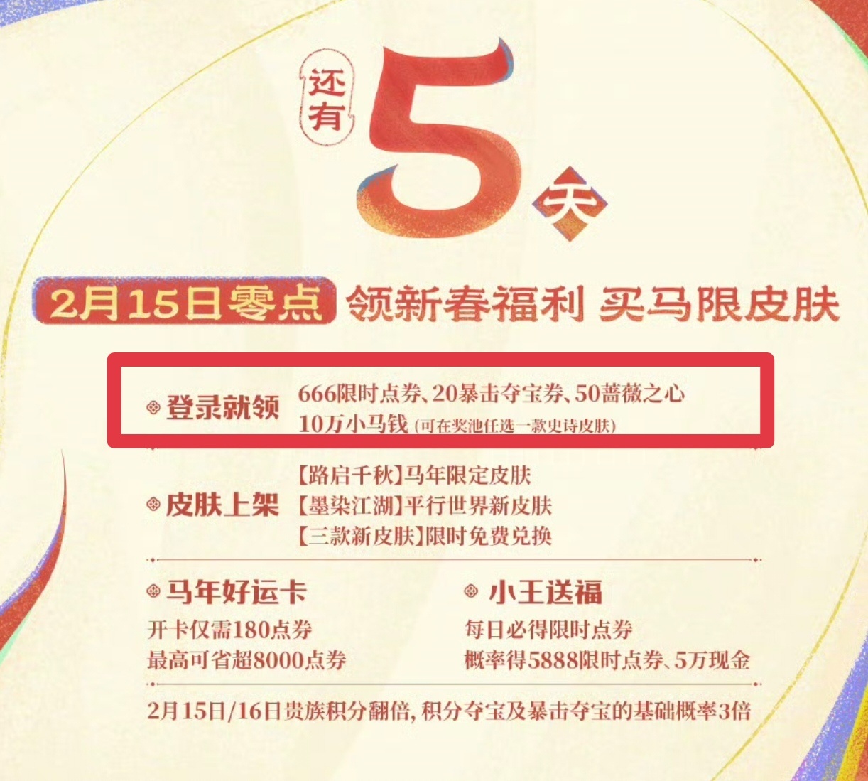 15号0点记得上线哦!领666点券!10w小马钱!50蔷薇之心!王者荣耀王者荣耀