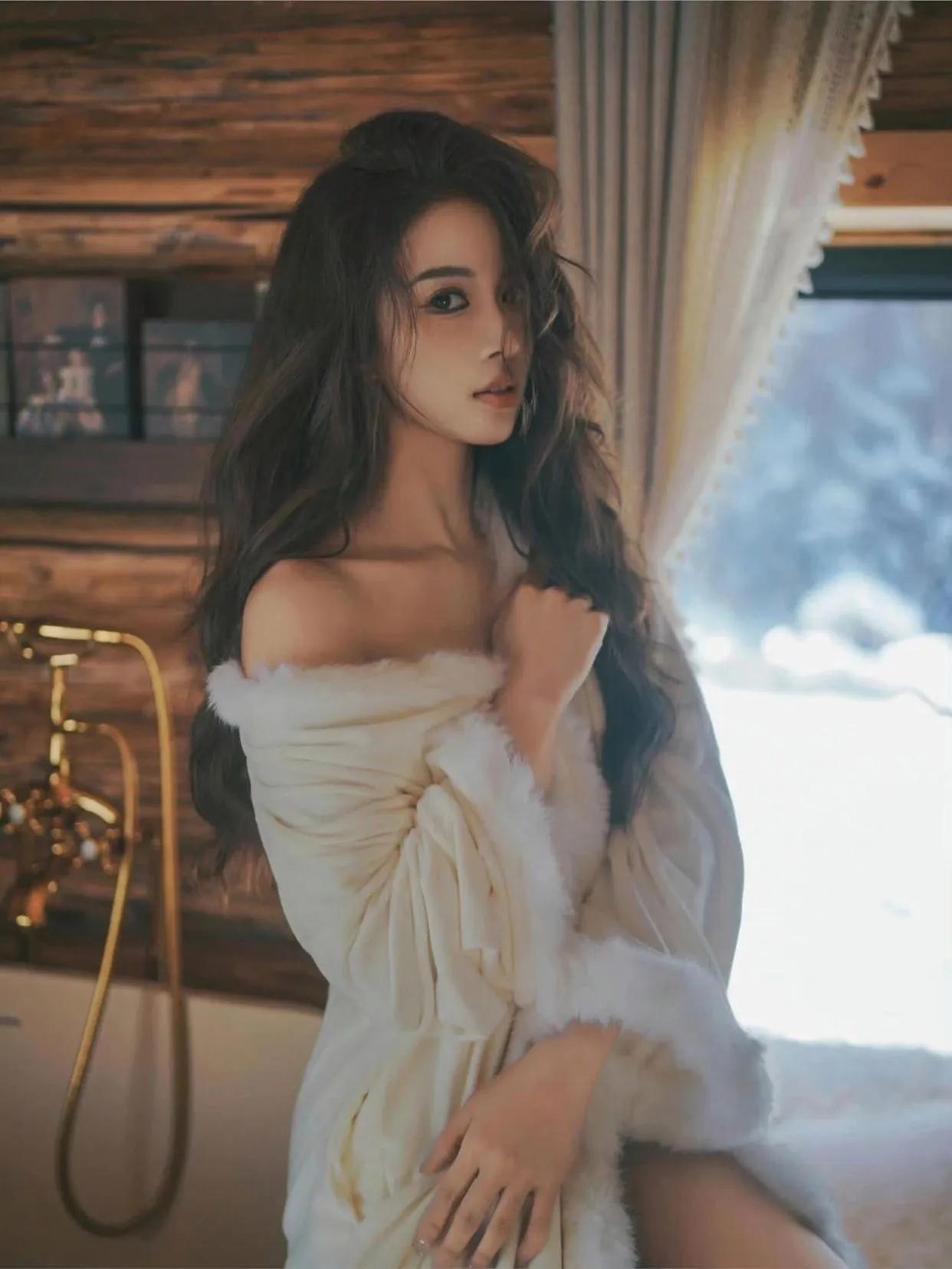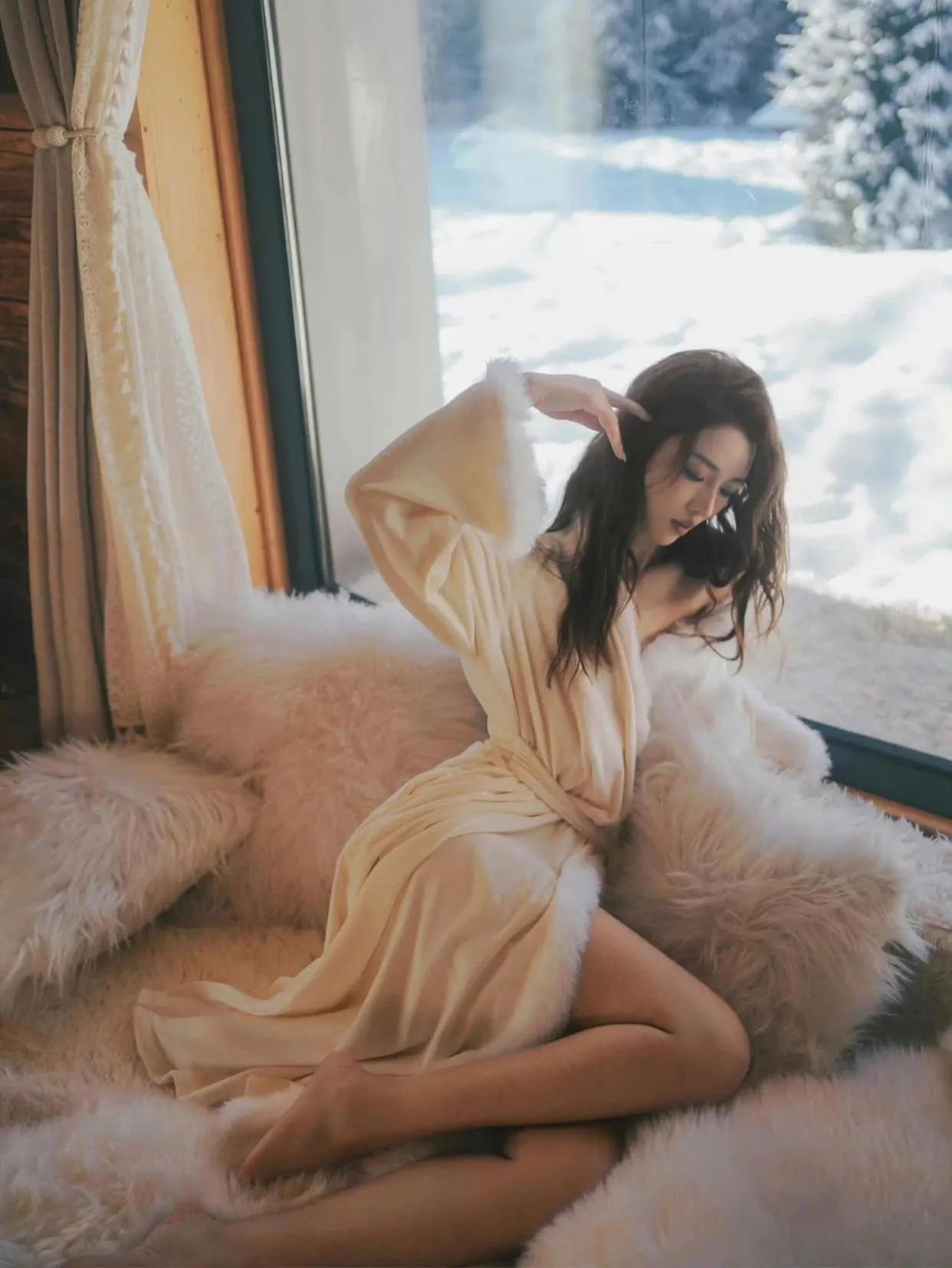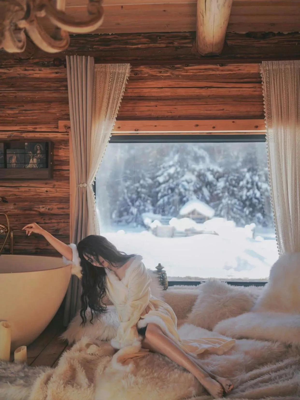 冬日暖阳下的慵懒时光,毛绒绒的沙发和柔软的裙摆,尽显温柔与舒适。
