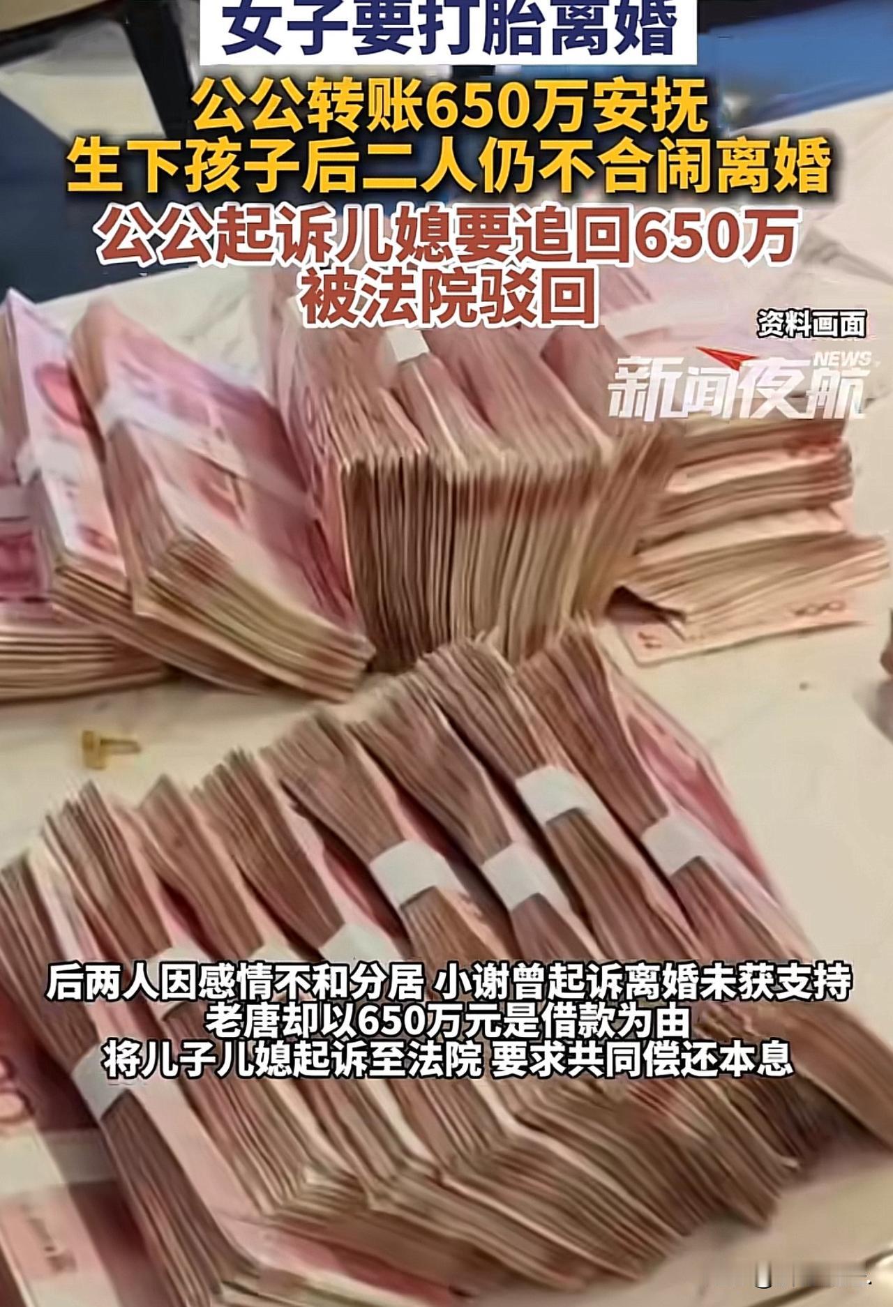 “这就是人性!”上海,女子怀孕期间,知道丈夫隐瞒婚史,骗了自己,就在她考虑原不原谅丈夫的时候,丈夫倒打一耙,说女子肚子里的孩子另有其人,不是他的。女子直接做亲子鉴定,以证清白。结果,丈夫啪啪打脸,孩子就是他的。女子对丈夫失望至极,提出离婚,并准备打掉孩子。女子公公坐不住了,拿出650万,给女子买了一套房子。女子这才同意把孩子生下来。孩子出生后,女子和丈夫分居,随后,女子起诉离婚,但法院并未支持。就在这时,公公一纸诉状将女子告上法庭,要求返还650万。法院判了。 2020年底,小唐和小谢领证结婚。本该是甜甜蜜蜜的小两口,可这段婚姻从一开始就充斥着欺骗与算计,早已注定了失败的结局。 小唐其实有过一段婚史,却始终对小谢刻意隐瞒。直到小谢怀上孩子,他觉得木已成舟、板上钉钉了,才轻描淡写地说出真相。 小谢心里满是失望,她介意的从不是丈夫有过婚史,而是被最信任的人刻意欺瞒。 可就在她还沉浸在被欺骗的痛苦中时,小唐却反过来倒打一耙,一口咬定小谢肚子里的孩子不是自己的,甚至污蔑她在外不清白。 那段日子,小谢如同身处地狱。一边要承受孕期身体上的疲惫与不适,一边要面对枕边人毫无底线的恶意揣测,被最亲近的人往身上泼脏水,那种委屈和心寒,比挨打还要难受千万倍。 她一遍遍解释、争辩,可小唐油盐不进,固执地认定孩子与自己无关,全然不顾小谢怀着身孕,情绪激动会严重伤及身体。 被逼到走投无路的小谢,最终只能同意去做亲子鉴定。而结果清清楚楚地证明,孩子就是小唐的亲生骨肉。 误会看似解开了,可扎在小谢心里的刺,却再也拔不出来了。 她去做亲子鉴定,不过是为了给自己讨一个清白,可那一刻她也彻底明白,自己对小唐早已失望透顶,心,早就死了。 小谢放话:孩子我打掉,婚我离,这个家我一秒都不想待。 眼看儿媳要打胎、婚姻要散、自家孙子要没了,公公老唐坐不住了。 他很清楚,错全在自己儿子身上,要是真闹到打胎离婚,唐家不仅没了后代,面子里子都丢光。 为了安抚小谢,留住这个孩子,老唐咬咬牙,分三次给小谢转了整整650万,每一笔都备注“购房款”。 650万,不是小数目,在上海徐汇区买一套学区房绰绰有余。 小谢用这笔钱买了房,登记在自己名下。 老唐当时说得好听,这是补偿你受的委屈,是给你和孩子的保障。 小谢看着这笔钱,想着肚子里的孩子,终究还是心软了,没有打胎,安安心心把孩子生了下来。 2023年6月,孩子顺利出生,本以为这场闹剧该落幕了,可人性的自私和算计,才刚刚浮出水面。 孩子出生才三个月,小唐和小谢的感情彻底破裂,两人分居。 小谢起诉离婚,法院没判离。 这时候,老唐的态度来了个一百八十度大转弯之前主动转钱的是他,现在翻脸要钱的也是他。 他直接把儿子儿媳一起告上法庭,张口就要小谢还650万外加利息。 理由更是离谱:说这650万不是补偿,不是赠与,是小谢以打胎要挟,跟他借的钱! 为了圆谎,他还拿出一张只有儿子小唐签字的借条,口口声声说这是夫妻共同债务,小谢必须还。 好家伙,这一家人的算盘打得震天响。先用钱稳住儿媳保住孙子,等孩子生下来、利用价值没了,就联合儿子倒打一耙,想把钱一分不少要回去。 既得了孙子,又不想花一分钱,把儿媳当成了生娃的工具,把650万当成了临时周转的筹码,吃相难看到了极点。 法庭上,双方吵得不可开交。 老唐振振有词,拿着借条和转账记录,一副受害者的模样;小唐全程附和,默认这笔钱是借款,完全忘了自己当初怎么猜忌妻子、逼她打胎的丑事。 只有小谢,委屈又愤怒,她清楚记得,这650万是公公主动转来的补偿,从头到尾,她没签过一个字,没认过这是借款。 法院审理后认为: 第一,老唐只有儿子小唐单方面签的借条,没有任何证据证明小谢知道这笔“借款”,更没有她的签字和事后追认。 第二,这笔钱买的房子登记在小谢个人名下,不是用于夫妻共同生活,根本不算夫妻共同债务。 直接给出了判决:驳回老唐的全部诉讼请求,小谢一分钱不用还! 对此判决结果,网友炸了:有网友说:鸡飞蛋打,老头心里好难受啊!夫妻感情出现了裂痕,难以修复,用钱也不起作用。老头办了傻事,后悔莫及。法院判的不合理,六百五十万可不是个小数,给了外人,竟要不回来。怎么讲也难以服众。老人别管儿女的事。 现在法律早有规定房产证不管谁的名字,只要出资人发银行流水,房子就能收回,除非白字黑字写明是赠予儿媳,而且就算他们自己钱买的,婚后属于共同财产,写谁的名字结果都一样,一人一半!