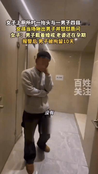 上海,一女子上厕所时,突然听见有动静,她抬头一看,竟和一名男子四目相对,她非常愤怒,出去质问男子在干什么,没想到男子坚决不承认,还找借口狡辩,但女子根本不信,直接报了警。 女子说,当时是下班时间,她在公司女厕所上厕所,刚蹲下没多久,就听见隔壁隔间有奇怪的动静,像有人在乱动。 ​ 她赶紧抬头查看,没想到竟直接跟一个男子四目相对,女子这才反应过来,男子是踩在隔壁女厕的马桶上,想从隔板上面偷拍。 ​ 结果男子没站稳,脚一滑差点摔下去,弄出了很大的声音,当场被女子抓了个正着。 ​ 女子迅速起身出来,然后大声质问男子:偷拍什么呢,赶紧出来,快点!我报警了啊! 闻言,男子慢悠悠打开门走了出来,看见女子在录像,他立马用手捂住了下半张脸,面对女子的询问,他也坚决不承认,还一直说“没有”。 之后警察来了,男子还狡辩,说自己只是走错了。经过调查,男子今年27岁,已经结婚了,他的老婆正在孕期,他手机壁纸还是跟老婆的亲吻照。 ​ 最后,男子被拘留了10天,他的公司知道后开除了他,物业也把厕所隔板加高进行整改。 女子又冷静又勇敢,当场录视频保留证据,然后报警,特别厉害,对这种事情就应该零容忍。 男子又虚伪又没底线,老婆都怀孕了还去偷拍,结果自己暴露自己,属于老天爷都看不下去了。 希望这个坏男人得到真正的惩罚,他怀孕的老婆不受伤害,女生上厕所能安心,以后再也没人敢偷拍。