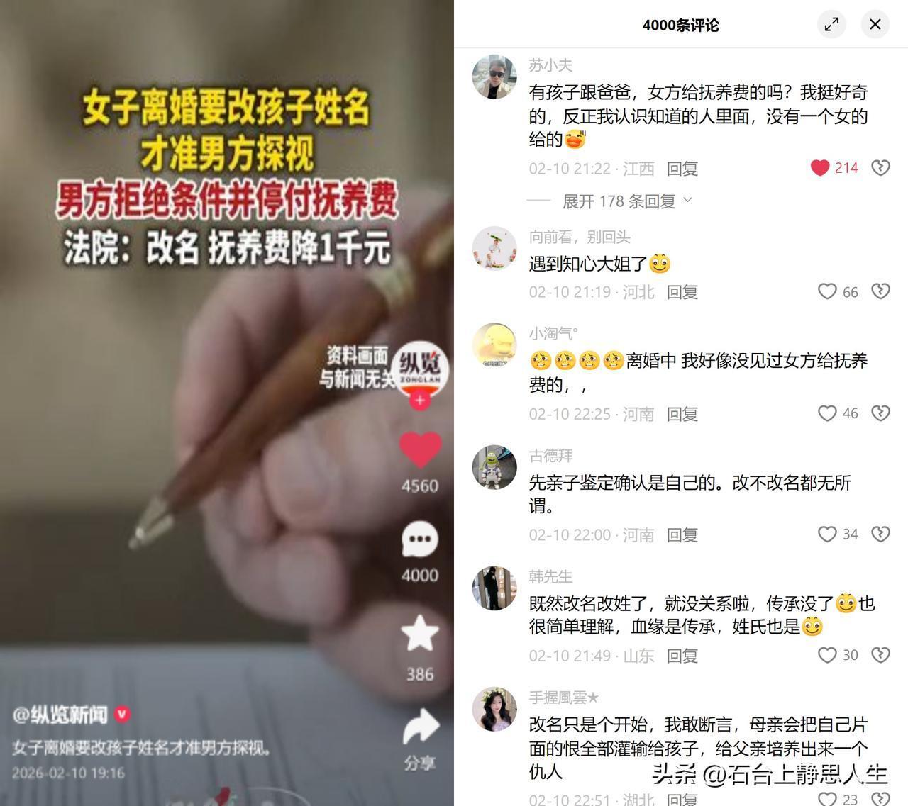 改姓换减抚养费,这调解耐人寻味。 一对离婚夫妻闹到相关单位:女方拿孩子改姓当条件才许探视,男方直接停付抚养费对抗。最后各退一步:孩子改姓,抚养费从两千砍到一千。 这事看着是两家掰扯,实则暴露了不少现实痛点。老观念里,姓氏是血缘的印章,改了姓就像断了父系的根;可法律明明白白规定,抚养费是基于血缘的义务,跟姓啥没关系。 大家都在讨论,有人纳闷少见女方付抚养费,有人担心单亲妈妈给孩子灌仇恨,本质上都是把离婚的恩怨绑在了孩子身上。姓氏成了斗气筹码,抚养费成了报复工具,唯独忘了孩子夹在中间的为难。 血缘改不了,可人心容易被偏私捂凉。真为孩子好,别拿这些当较劲的由头。