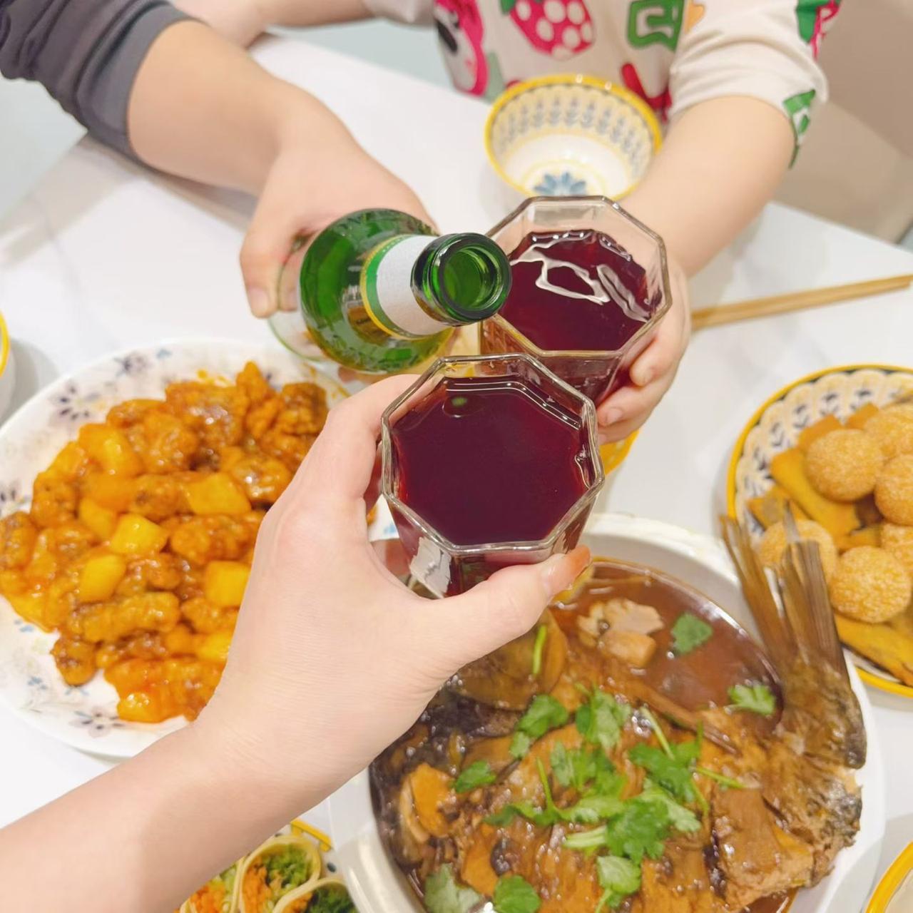 温馨聚餐时光,美味佳肴与美酒相伴!🍜🍷