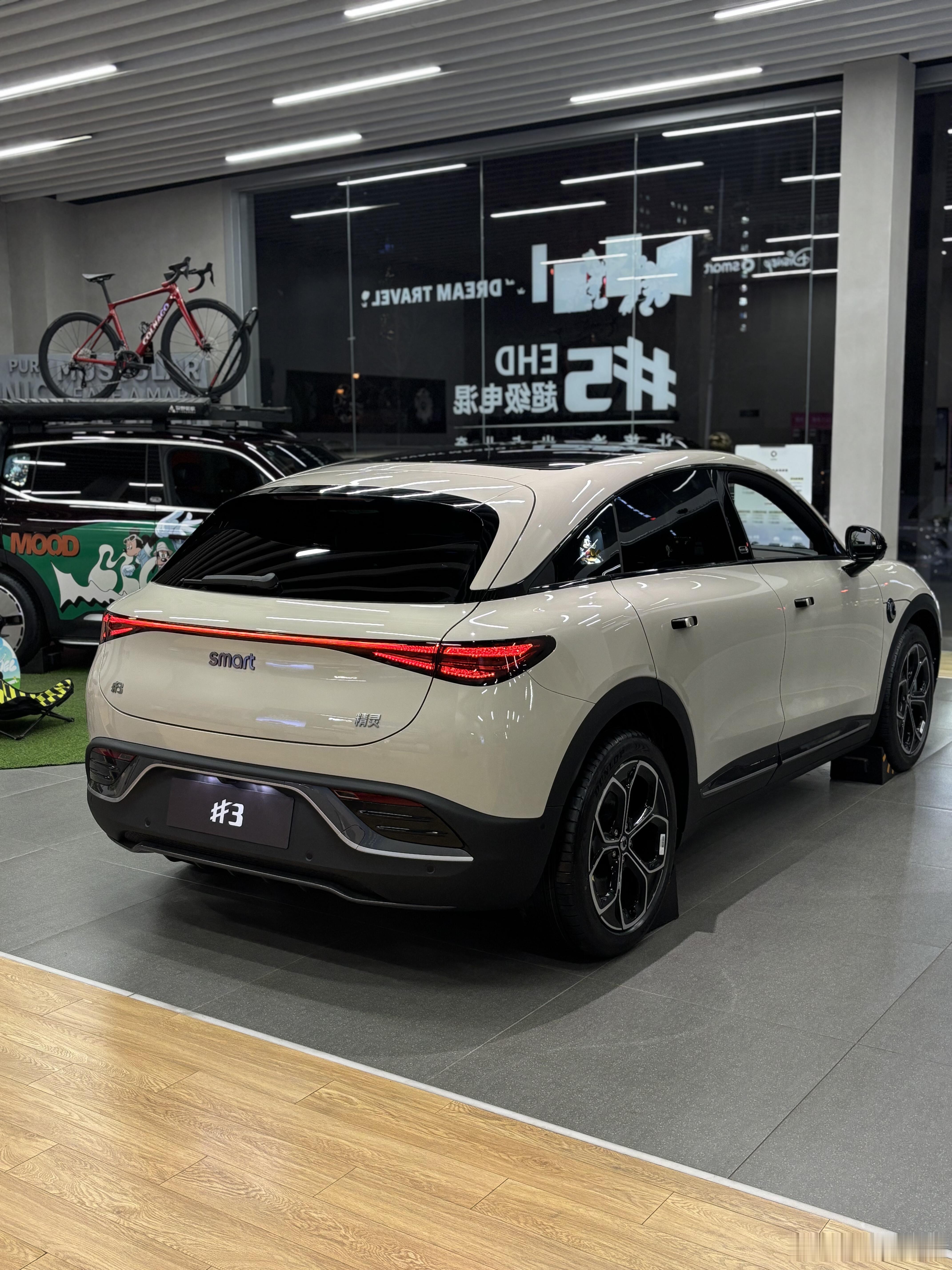姐妹们,这台smart精灵3号真的是颜值与实力并存!流线轿跑+无框车门,月光白自带高级感,闺蜜团全员舒适入座,自动泊车救新手,550km续航够浪漫逃亡,后排放倒秒变“移动观景房”,是我的少女心收纳舱没错了大v聊车