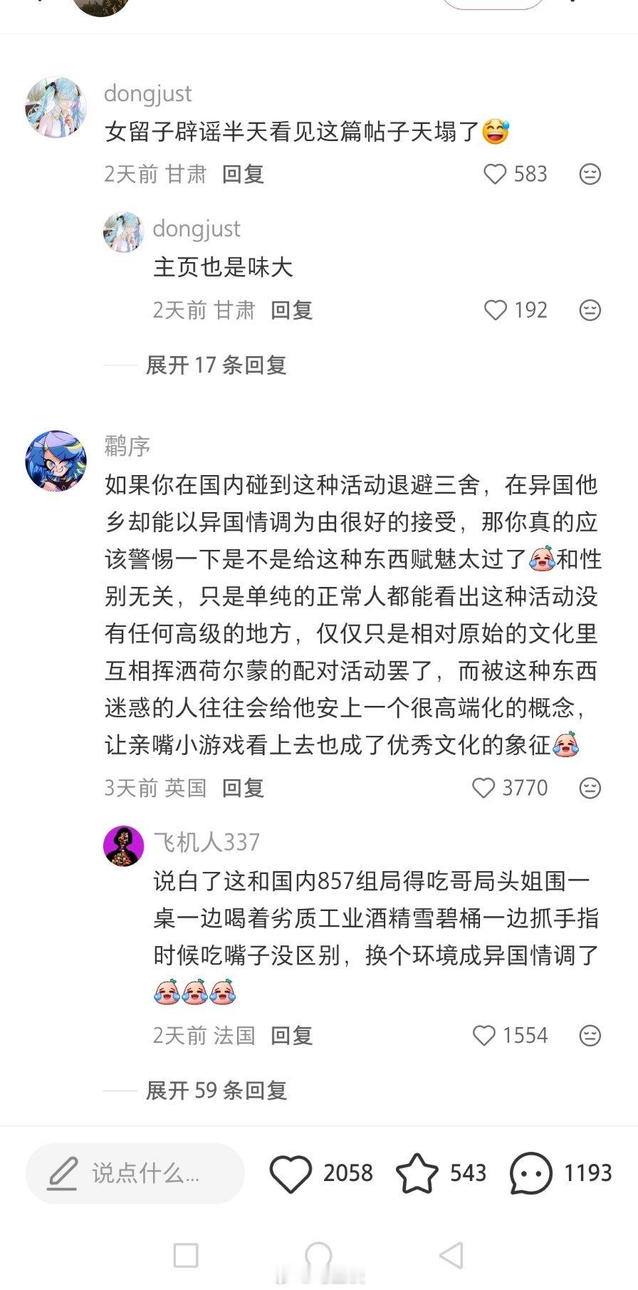 到了陌生的地方,周边全是陌生人,连网络和社交软件都是隔离的,这些女人玩的High了,就算让她在大街上和狗来一段情未了,她们内心也只有刺激两字,根本不怕父母亲人朋友知道有多丢人,也根本不需要礼义廉耻。