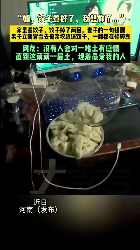 看哭了!2月8日报道,河南,男子一家煮饺子吃,饺子熟后在盛饺子时,饺子掉了两回,起初男子也没在意,直到妻子一句“娃的奶奶想吃了”瞬间点醒男子。于是男子二话没说,赶紧拿东西盛了些饺子,冒雪去到母亲坟边给她送饺子。 那天晚上,河南下着漫天大雪,雪花铺天盖地,把整个村庄都裹上了一层白,深夜的寒意透过门窗,钻进每一户人家。 一家农户的厨房里,却暖意融融,锅盖被锅里的热气顶得咕嘟作响,氤氲的热气模糊了窗户,也驱散了屋外的严寒。 这是春节尾声里一个极其寻常的夜晚,一家人围在一起,煮了一锅热气腾腾的饺子,准备吃一顿暖心的晚饭,男主人则忙着把煮好的饺子盛到碗里。 一切都显得那么平常,没有任何预兆,第一只刚煮好的饺子,顺着漏勺的边缘滑了下去,“啪嗒”一声掉在了地上。 男子低头看了一眼,没太在意,只当是自己手滑,或是漏勺没端稳,毕竟煮饺子时偶尔掉一两个,也是很正常的事。 他弯腰捡起掉在地上的饺子,随手扔进了垃圾桶,转身继续盛饺子,可没想到,紧接着,第二只饺子又顺着漏勺掉了下来,和第一只一样,落在了同样的地方。 这时候,男子也只是皱了皱眉,心里暗自嘀咕,今晚怎么这么不小心,手老是不稳,顶多觉得自己手气有点背,并没有往别的地方想。 在成年人的世界里,这就是最简单的物理失误,是漫不经心的手滑,不值得深究,也不值得放在心上,换做任何人,大概都会和他一样,只当是件微不足道的小事,一笑而过。 可就在这时,坐在餐桌旁的妻子,随口说了一句话,没有刻意提高音量,也没有任何煽情的语气,就像平时拉家常一样,轻轻说了一句“娃的奶奶想吃了”。 就是这简单的七个字,没有华丽的辞藻,却像一把温柔的钥匙,瞬间打开了男子心底最柔软的地方,也瞬间击穿了这个中年男人的心理防线。 那一刻,男子脸上的不耐烦和漫不经心,瞬间消失得无影无踪,取而代之的是难以掩饰的动容。他没有反驳妻子的话,也没有解释什么,眼泪几乎是瞬间就涌了上来,顺着脸颊滑落。 平日里,他是家里的顶梁柱,忙着挣钱养家,忙着应付生活里的柴米油盐,忙着扛起整个家的重担,母亲离世后,他一直努力表现得很坚强,自以为已经习惯了没有母亲的日子,自以为已经走出了失去母亲的痛苦。 可直到妻子说出这句话,他才发现,那份藏在心底的思念,从来都没有消失过,只是被他小心翼翼地隐藏了起来,被生活的琐碎暂时掩盖了。 他瞬间从一个扛起家庭重担的硬汉,变回了那个失去母亲的孩子,所有的坚强和伪装,在那一刻彻底崩塌。 他二话没说,转身就从橱柜里拿出一个干净的新碗,小心翼翼地盛了满满一碗热气腾腾的饺子,生怕再掉一个,也生怕饺子凉得太快。 随后,他匆匆穿上外套,推开家门,一头扎进了外面漫天飞舞的大雪里,没有丝毫犹豫,也没有顾及屋外的严寒。 外面的雪下得正紧,寒风呼啸着刮在脸上,刺骨的疼,雪花落在他的头发上、脸上、肩膀上,瞬间就融化了,浸湿了他的衣物。 顺着他脸颊流下来的液体,已经分不清是天上落下的雪水,还是他眼里忍不住的泪水。 他深一脚浅一脚地走在积雪里,脚步匆匆,心里只有一个念头,那就是快点赶到母亲的坟前,让母亲吃上一碗热乎的饺子,他甚至还在心里碎碎念,怕母亲等得着急。 雪越下越大,把母亲的坟堆盖得严严实实,他走到坟前,轻轻放下那碗热饺子,伸手抚摸着冰冷的墓碑,就像抚摸着母亲曾经温暖的手 。他坐在坟前,絮絮叨叨地说着家里的琐事,说着今年的收成,说着妻儿的近况,把所有的思念和委屈,都倾诉给地下的母亲。 一碗热饺,一场大雪,一份深埋心底的孝心,没有惊天动地,却足以打动所有人。看哭了无数人的背后,是中国人刻在骨子里的亲情与牵挂。
