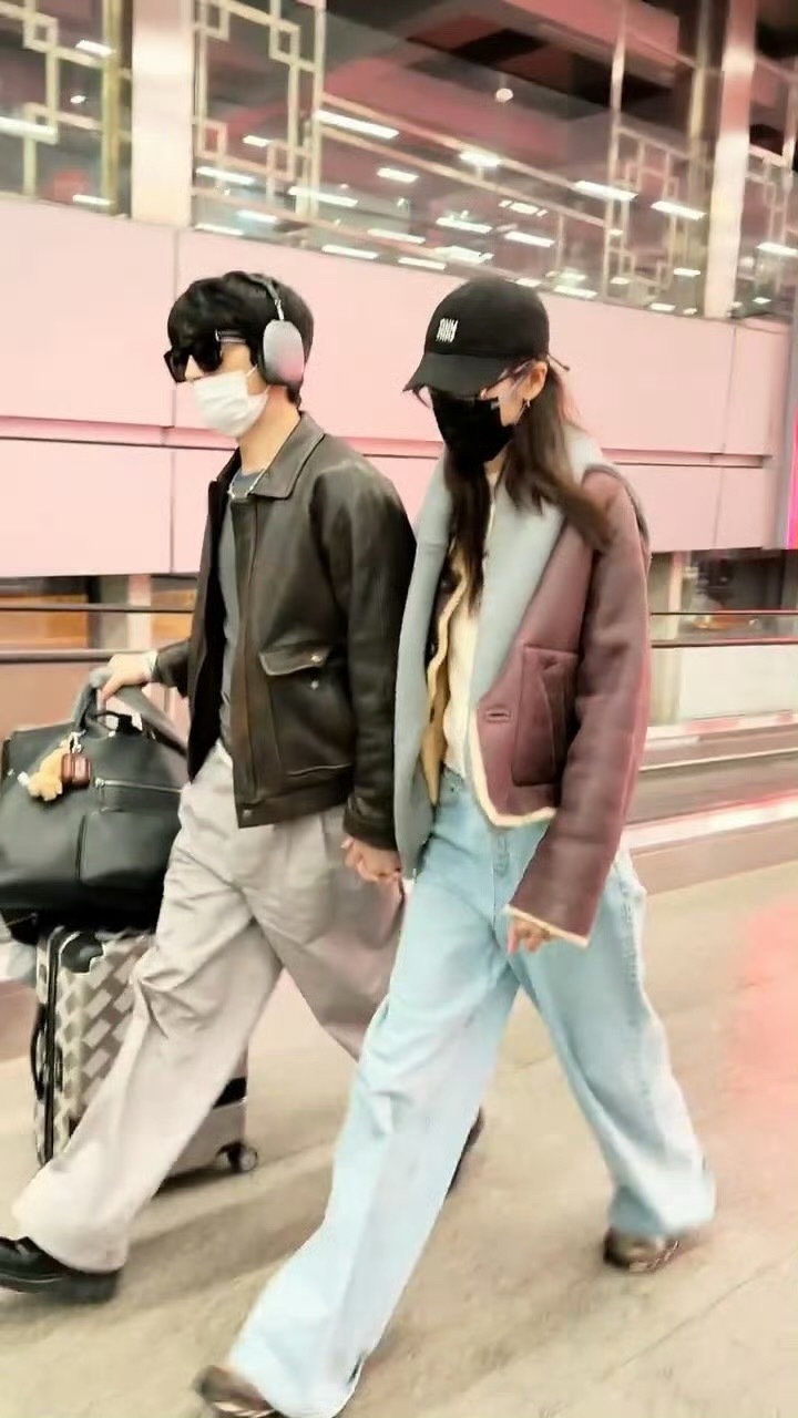 井柏然刘雯机场十指紧扣颜值如此权威的一对真情侣就是好磕
