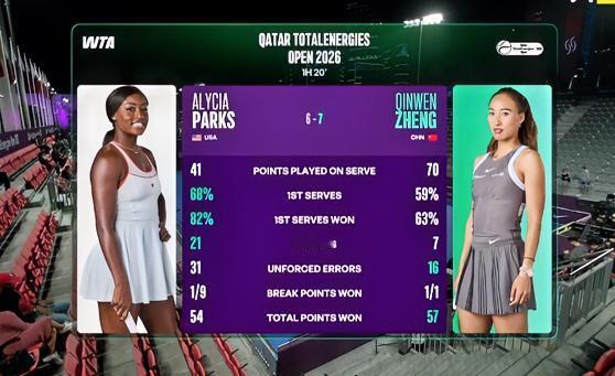 首盘耗时80分钟!! … 帕克斯发球太恐怖了,接发球也神了!!制胜分21对7,郑钦文完全被碾压,但在各方面落下风的情况下,郑钦文还是顽强的将比赛拖入抢七,抢七中郑钦文抓住了帕克斯一记致命的双误,7-6(5)拿下抢七。目前第二盘比赛正在进行中,钦文2-3落后,加油加油!!郑钦文 帕克斯