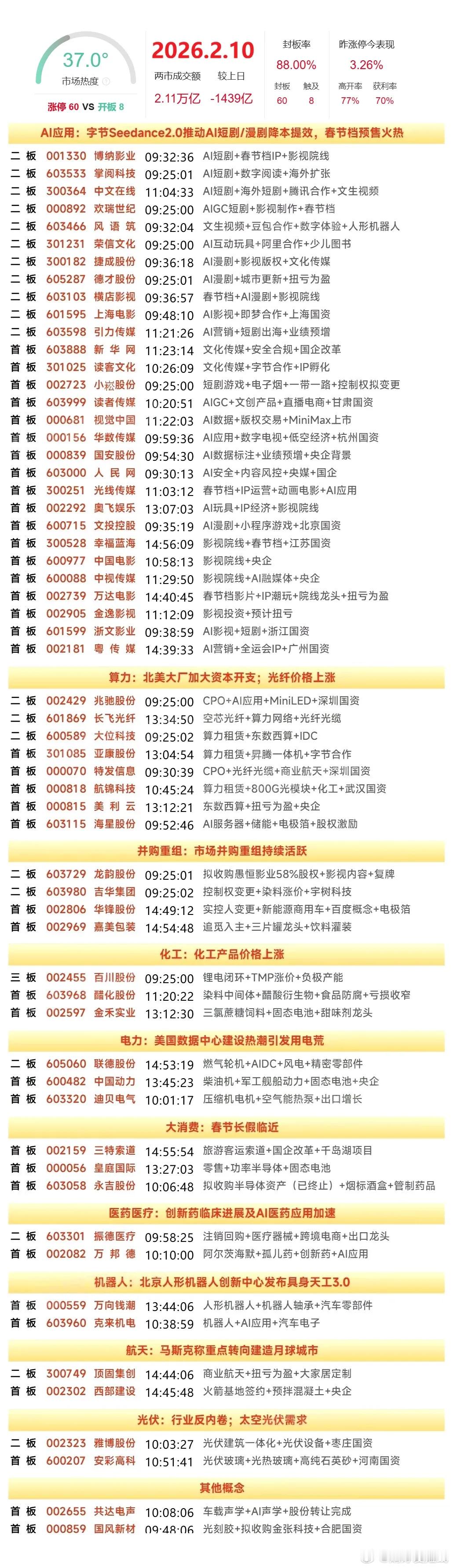 2月10日涨停榜