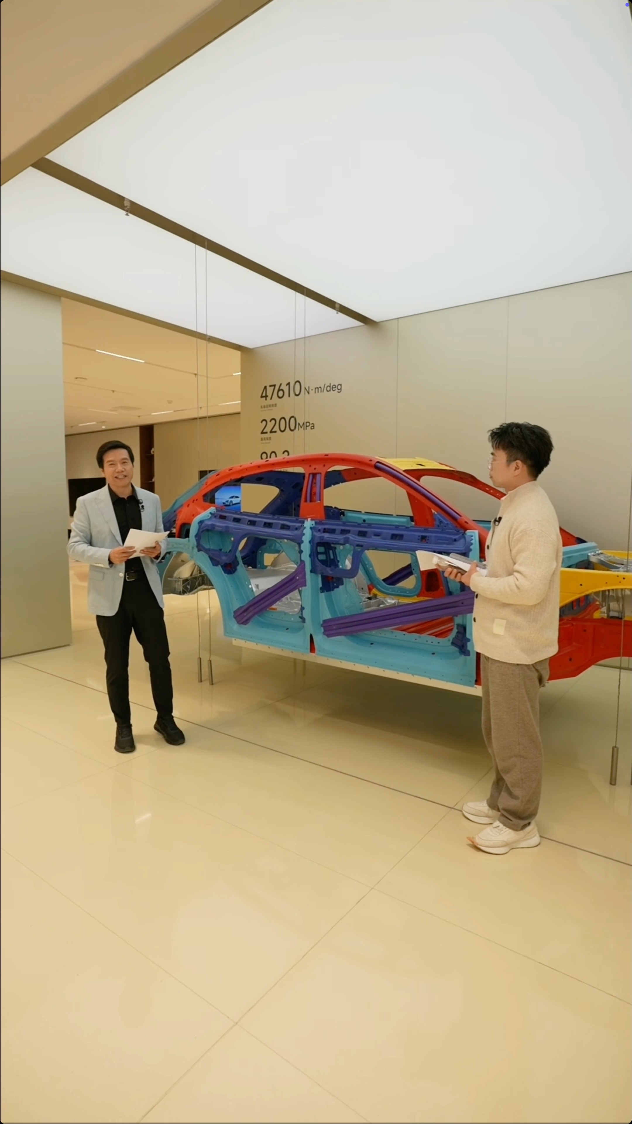 具体到参数上,SU7扭转刚度为51000N·m/deg,YU7扭转刚度为47610N·m/deg,非常优秀。尤其是很火的“交叉轴”测试中,得益于更高的扭转刚度,小米汽车的车身形变更小、表现更好。
