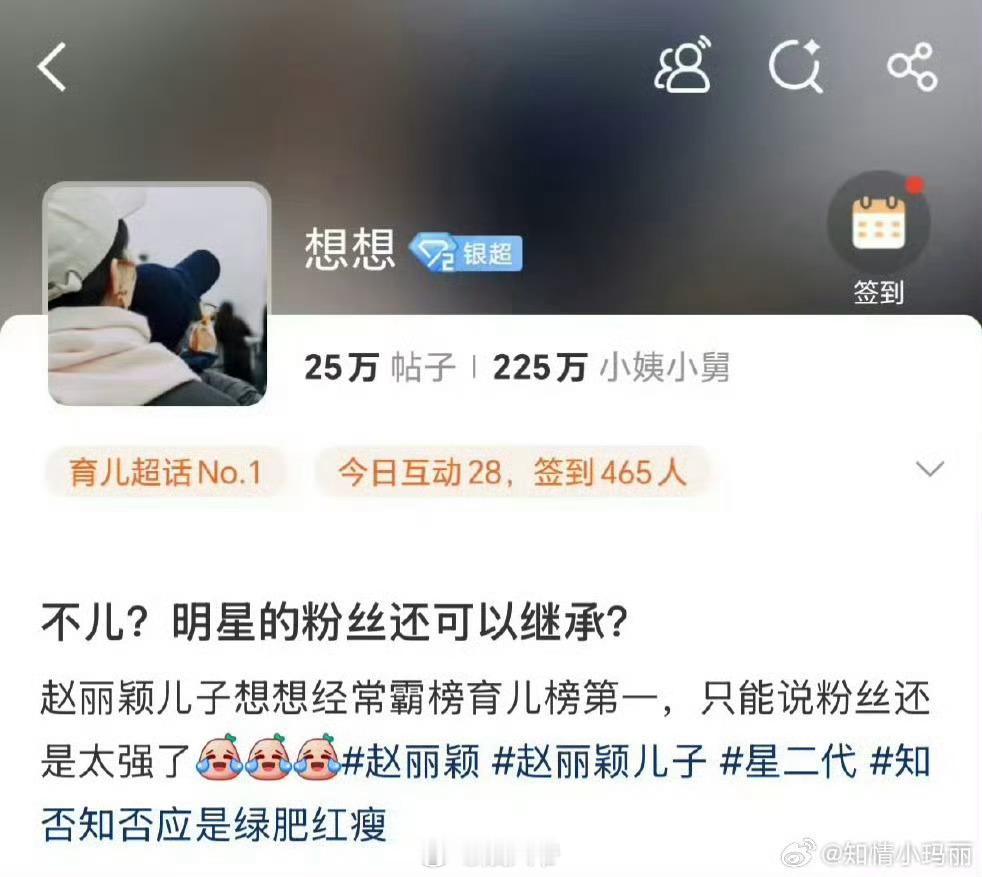 赵丽颖儿子想想超话有223万粉丝与其关注孩子不如多多关注作品