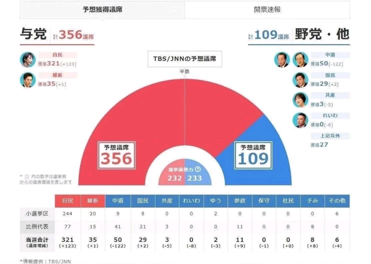 ➤日本众议院中自民党席位为321,占总席位(465)的69%,与高市早苗内阁在日本的支持率一致,也算是相互验证了。