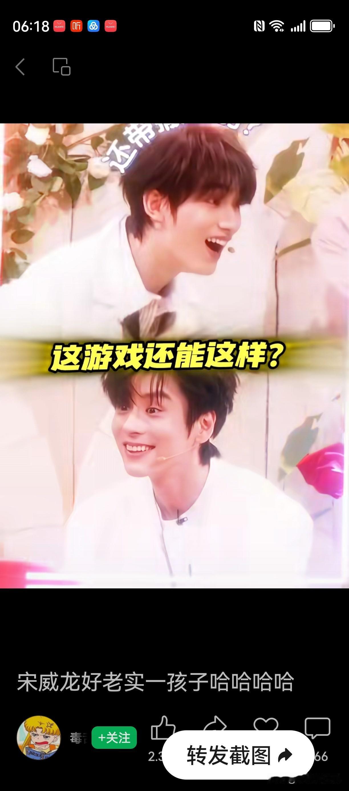 原来这大帅哥宋威龙啊!是这样搞笑好玩的人! 会害羞,却非常善良真诚!话说一次综艺节目上,提问游戏里魏哲铭要宋威龙说出比他帅的三个点! 且说在电视剧《下一站是幸福》里,同样很帅的魏哲鸣演他的同事,他演青春美少年元宋,和他的主管有一段相差十岁的姐弟恋。 同一个剧组待过,也有不少对手戏。应该他和魏哲鸣比较熟悉,但你们猜他会怎么说! 他居然回答,我比你黑但比你Man,头发比你黑,还有别人提醒他说穿着比你帅,但他不好意思说自己帅,灵机一动说成衣服比你蓝。 哈哈哈!这还没完!更搞笑的在后面,让他说最后悔的三件事,居然脱口而出—— 睡得太晚了!起的太早了!然后刚才说比你Man!要我说这宋威龙也太有情商了吧! 轮到他向魏哲鸣提问了,你觉得两位女生哪个更漂亮一点!这问题确实有点犀利,大家正等着魏哲鸣如何回答呢! 但是!但是!这宋威龙居然紧急撤回,说这问题太狠了,算了!然后一个箭步冲过去,把球又抢回去了! 哈哈哈!还能这样玩,把大家都整不会了!但宋威龙确实非常搞笑有趣! 所以谁说他文化水平低呢!这回答情商智商都很高啊,友友你们说对不对?!