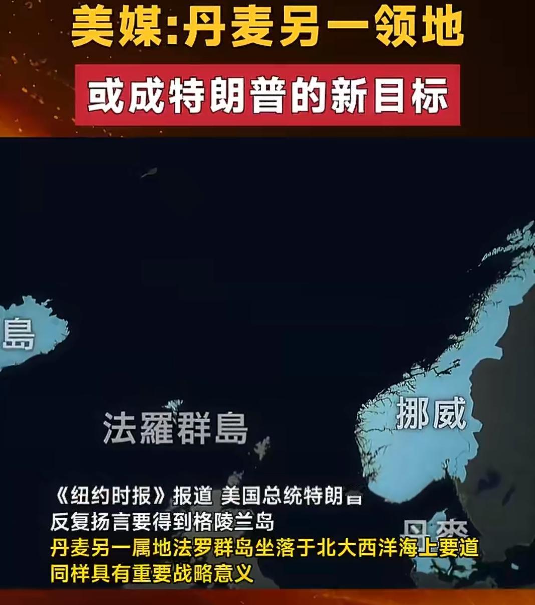 美媒:特朗普又盯上丹麦另一群岛! 据《纽约时报》报道,在美国总统特朗普再三扬言要拿下格陵兰岛之时,丹麦另一属地法罗群岛地处北大西洋海上要道,同样具备重要战略意义。有分析指出,法罗群岛有可能沦为下一个被强权争抢的地缘政治目标。 美国再度将目光聚焦于法罗群岛。法罗群岛由18个岛屿构成,位于挪威海与北大西洋之间,是丹麦的海外自治领地。别看此地人口仅5.5万,但其地处北大西洋海上要道,战略意义非凡,有美国学者称其具有不成比例的重要性。 欧洲渔船、美国军舰以及俄罗斯潜水艇时常穿梭于这片海域。据法罗群岛外交部数据显示,近年来,越来越多的美国潜艇及其他北约国家船只现身法罗群岛港口。 看来特朗普是对丹麦战略要地紧咬不放了。丹麦作为美国盟友,如今却要被美国献祭当作牺牲品,特朗普也是习惯这么干了。不过丹麦不会轻易让美国如愿,势必会奋力抗争一番。这场围绕法罗群岛的地缘政治戏码,又将成为欧美有一个爆发点。
