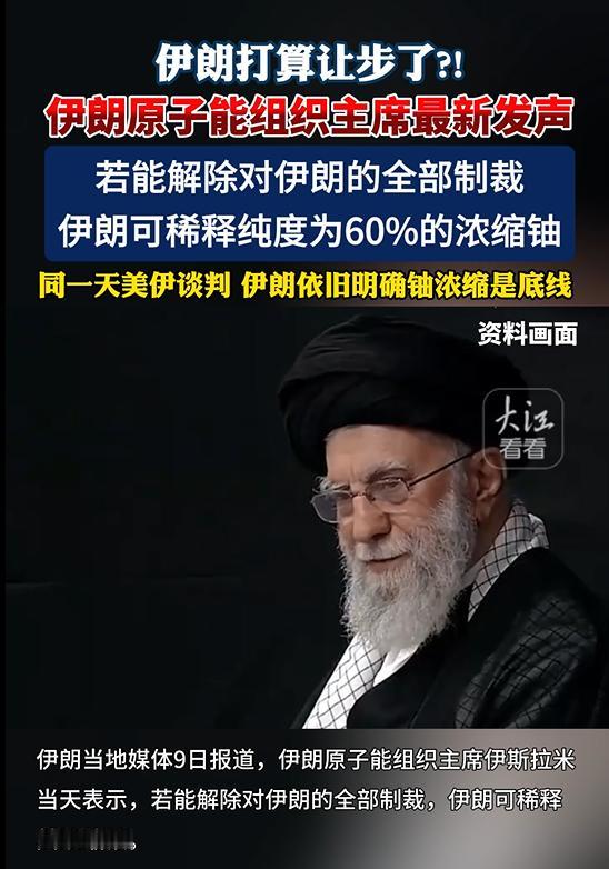 伊朗在核问题上似乎传出了让步信号,却又坚守着不可逾越的底线。 伊朗当地媒体9日报道,伊朗原子能组织主席伊斯拉米称,若能解除对伊朗的全部制裁,伊朗可稀释纯度为60%的浓缩铀。这一表态,让外界猜测伊朗或在核问题上有所松动。 然而,在同一天的美伊谈判中,伊朗依旧斩钉截铁地表明,铀浓缩是其绝不能妥协的底线。 伊朗在制裁压力下,试图以可能的让步换取发展空间,但核能力关乎国家核心利益与安全,伊朗必然坚守。未来美伊谈判走向充满变数,是僵持不下还是能找到平衡点,都是未知数。