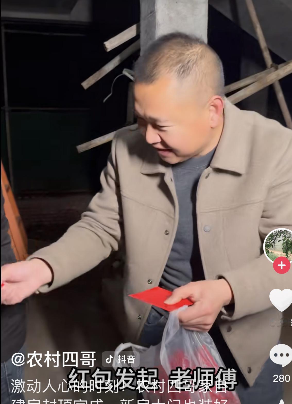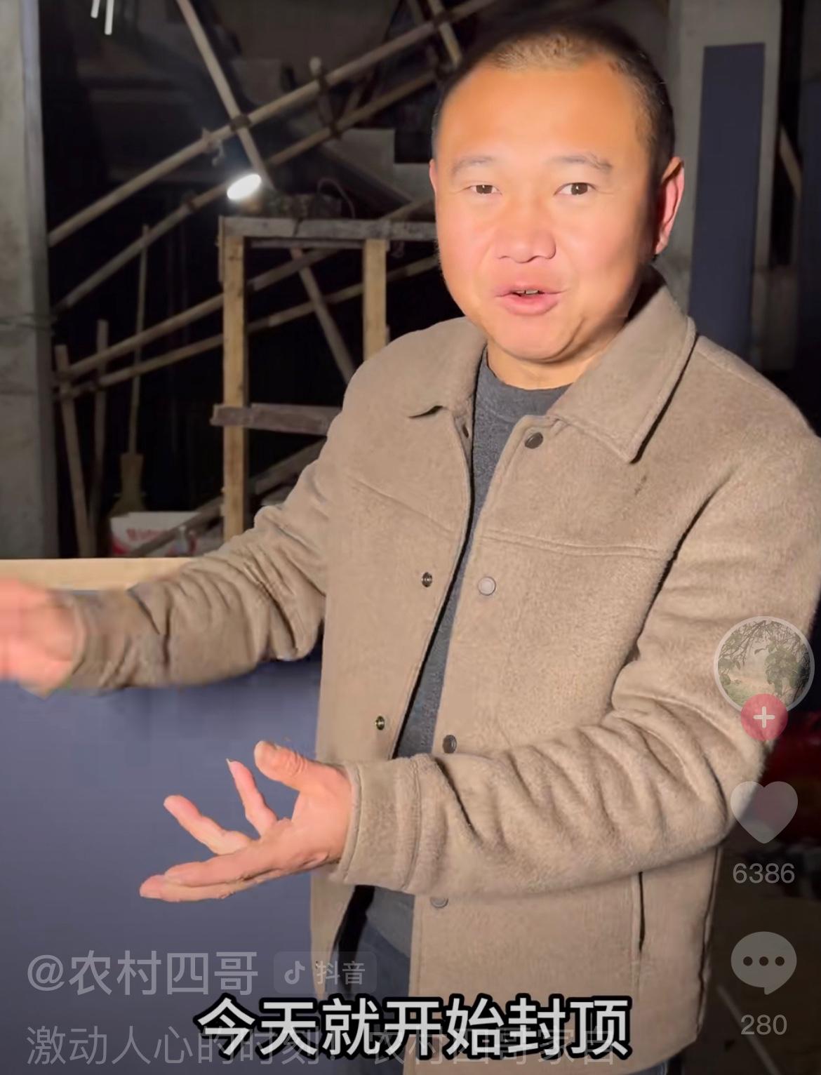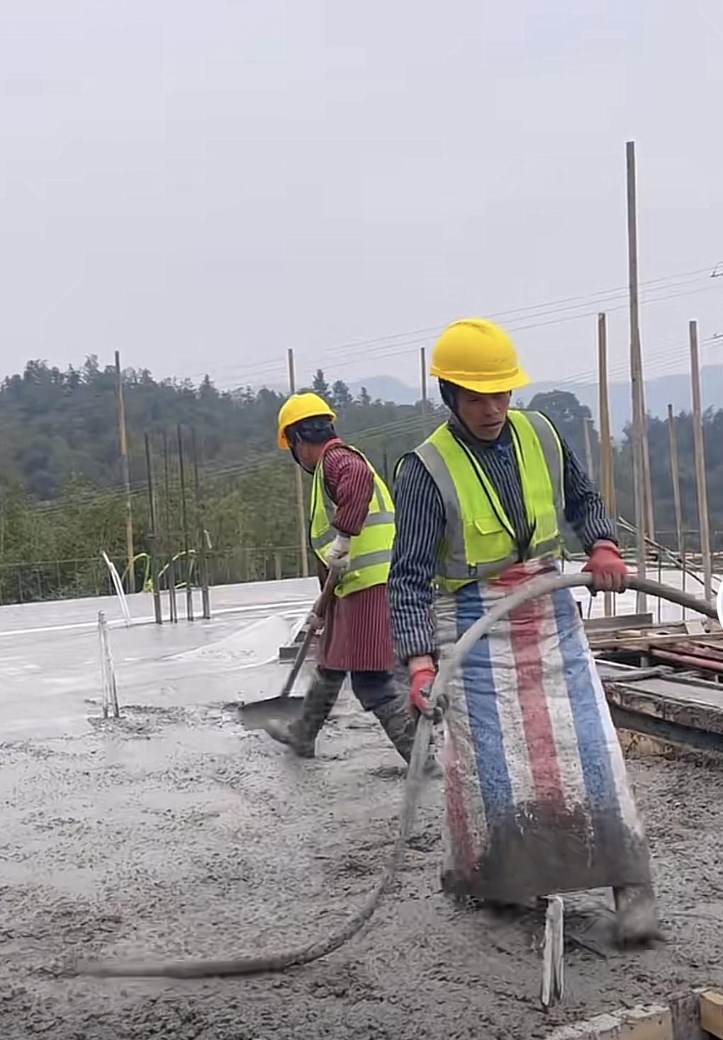 农村四哥家的别墅封顶了! 清早,农村四哥站在别墅工地前,宣布吉时已到,开始封顶,安装大门。 泵车开始灌混凝土,农村四哥和工人一起抬起大门,安装好,老师傅站在门口讲吉利话,祝四哥家财源广进,平安幸福。 农村四哥提着塑料袋,开始发红包,发了安门的师傅,到楼顶发红包。楼面灌好混凝土,工人在整平。 农村四哥的房子大概在12月26日前后开始拆旧房,平整场地。到现在2月10号左右就封顶,这速度杠杠的。 看来,年前主体差不多就完工,年后开始装修,再过大半年应该就可以入住新房了。