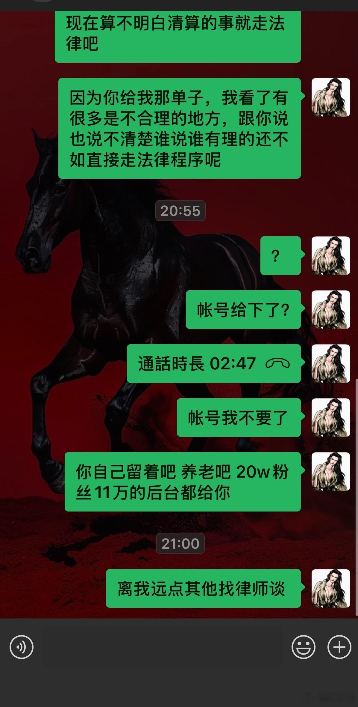 我为我的年轻鲁莽买单 错信他人 合伙开公司想着更好做衣服发货客服一条线 合伙人嘴里没一句实话 终止合作阿毛帐号我不要了 在其公司员工任职所有问题 与本人无关 请找当事人谈
