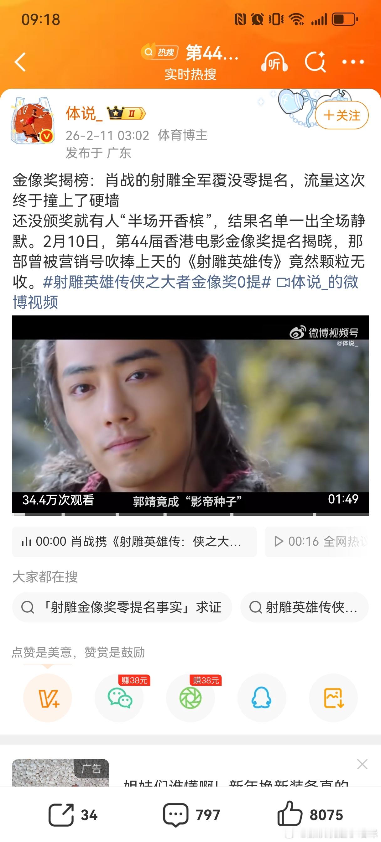 想当初🦐一个劲吹徐克,说啵啵抠脚,结果现在自家金像奖0提