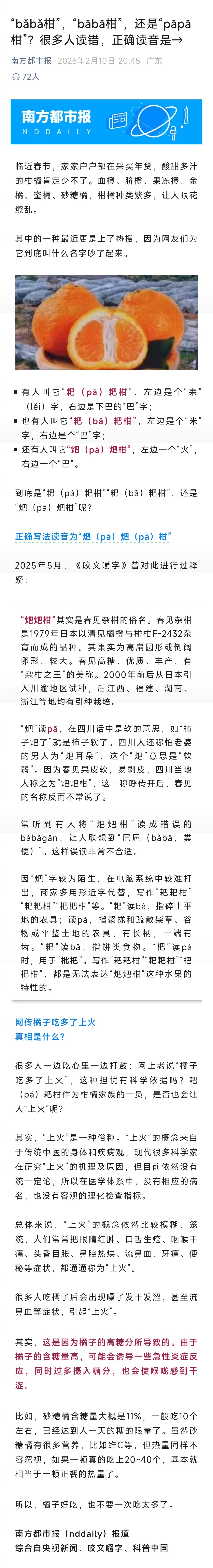 #耙耙柑还是粑粑柑很多人读错#【“bǎbǎ柑”,“bābā柑”,还是“pāpā柑”?很多人读错,正确读音是→】#耙耙柑还是粑粑柑网友吵翻了#临近春节,家家户户都在采买年货,酸甜多汁的柑橘肯定少不了。血橙、脐橙、果冻橙,金橘、蜜橘、砂糖橘,柑橘种类繁多,让人眼花缭乱。