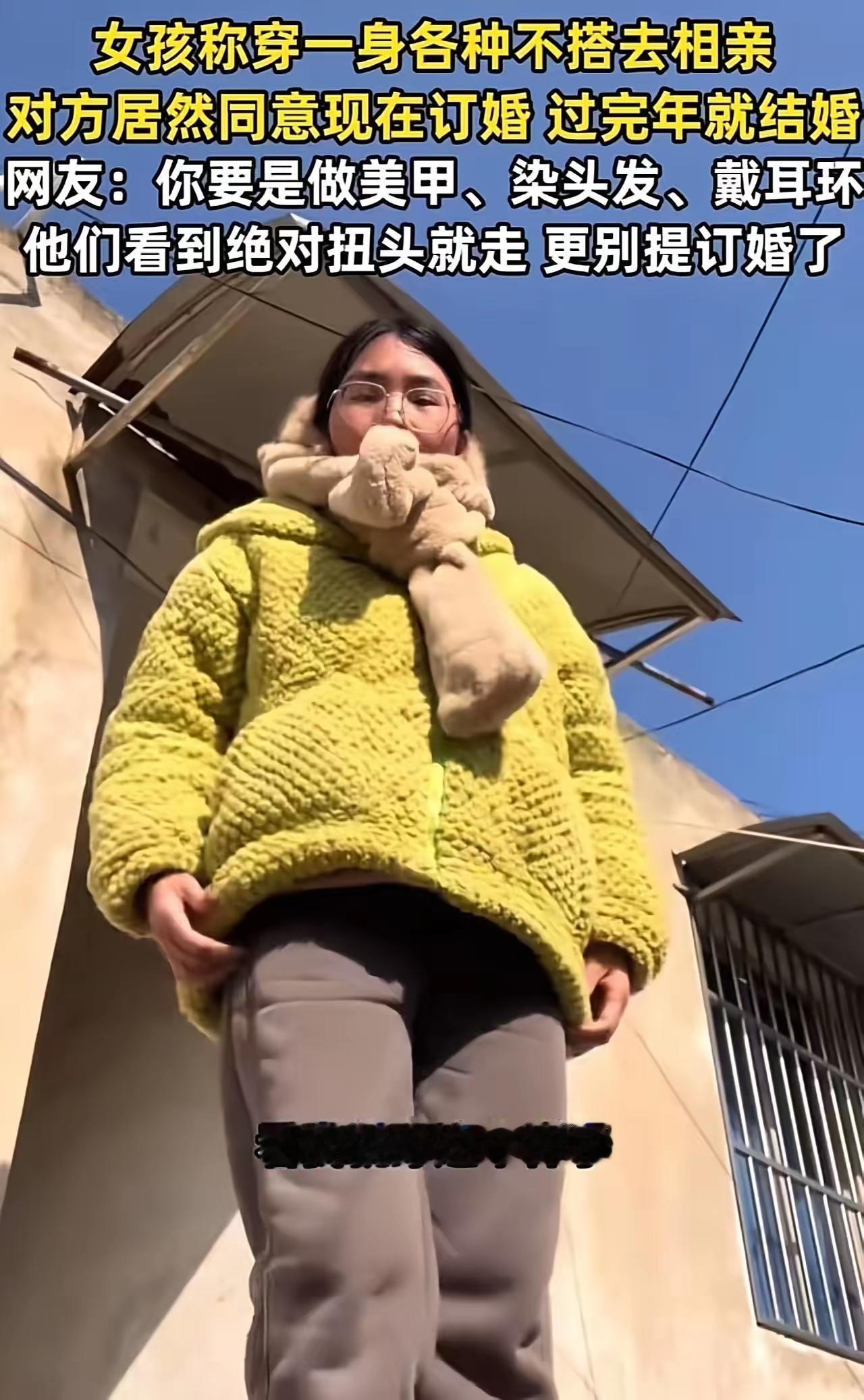 “有些男的真的饿了……”安徽,女孩发视频称,自己故意穿得“很丑”去相亲,没想到对方同意立即订婚,过完年就结婚。她直言“就我穿这么恶心去相亲他们也同意……”。 视频一出,评论区直接炸锅。有人笑她反向操作翻车,有人酸男方饥不择食,可扒开这荒诞的一幕,藏着当下相亲市场最扎心的真相。 女孩本是被逼相亲,故意素面朝天、穿旧衣、扮邋遢,满心想着把对方吓跑,应付完家人就算完事。可她万万没想到,男方非但不嫌弃,反而当场拍板订婚,连犹豫都没有。 这真的是“看上了”吗?根本不是。 他看中的不是她的灵魂,不是她的有趣,甚至不是她的长相,只是一个能快速完成结婚任务的人选。在很多催婚重压下的人眼里,相亲早已不是谈情说爱,而是一场流水线式的匹配:年龄合适、家境过得去、性格不折腾,就能立刻敲定。 女孩的吐槽,藏着无数年轻人的无奈。我们总在相亲里小心翼翼:打扮精致怕被说物质,穿着朴素怕被看轻,掏心掏肺聊三观,对方却只算“性价比”。明明想找一份真心相待,最后却发现,自己不过是对方人生清单里的一个勾选项。 更讽刺的是,社会总对女性的外貌百般苛责,却对男性的“凑合”无限宽容。好像只要能结婚,有没有感情、有没有尊重,都不重要。 可婚姻从来不是凑活,不是随便找个人搭伙过日子。你值得被认真看见,值得因为你的可爱、善良、独立而被爱,而不是因为你“不挑剔、好拿捏”。 别让催婚的焦虑,消耗你对爱情的期待;别让快餐式的相亲,降低你对幸福的标准。哪怕慢一点,也要等那个看清你所有模样,依然坚定选择你的人。 你相亲遇过哪些离谱操作?你能接受这样的闪婚吗?评论区大胆吐槽! 别让催婚的焦虑,消耗你对爱情的期待