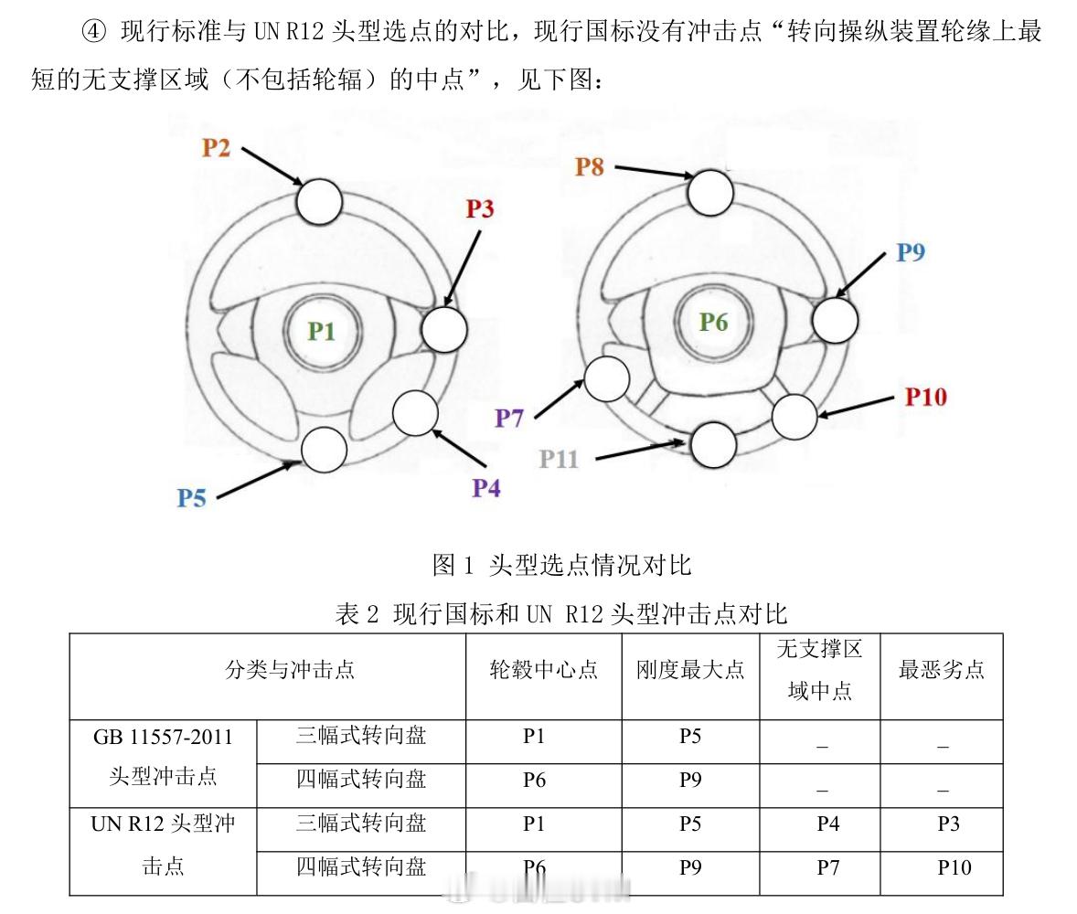 2、这次新标准非常关注“硬点安全”。新标准明确增加了一个强制性的冲击点。标准的说法是转向操纵装置轮缘上最短的无支撑区域(不包括轮辐)的中点。